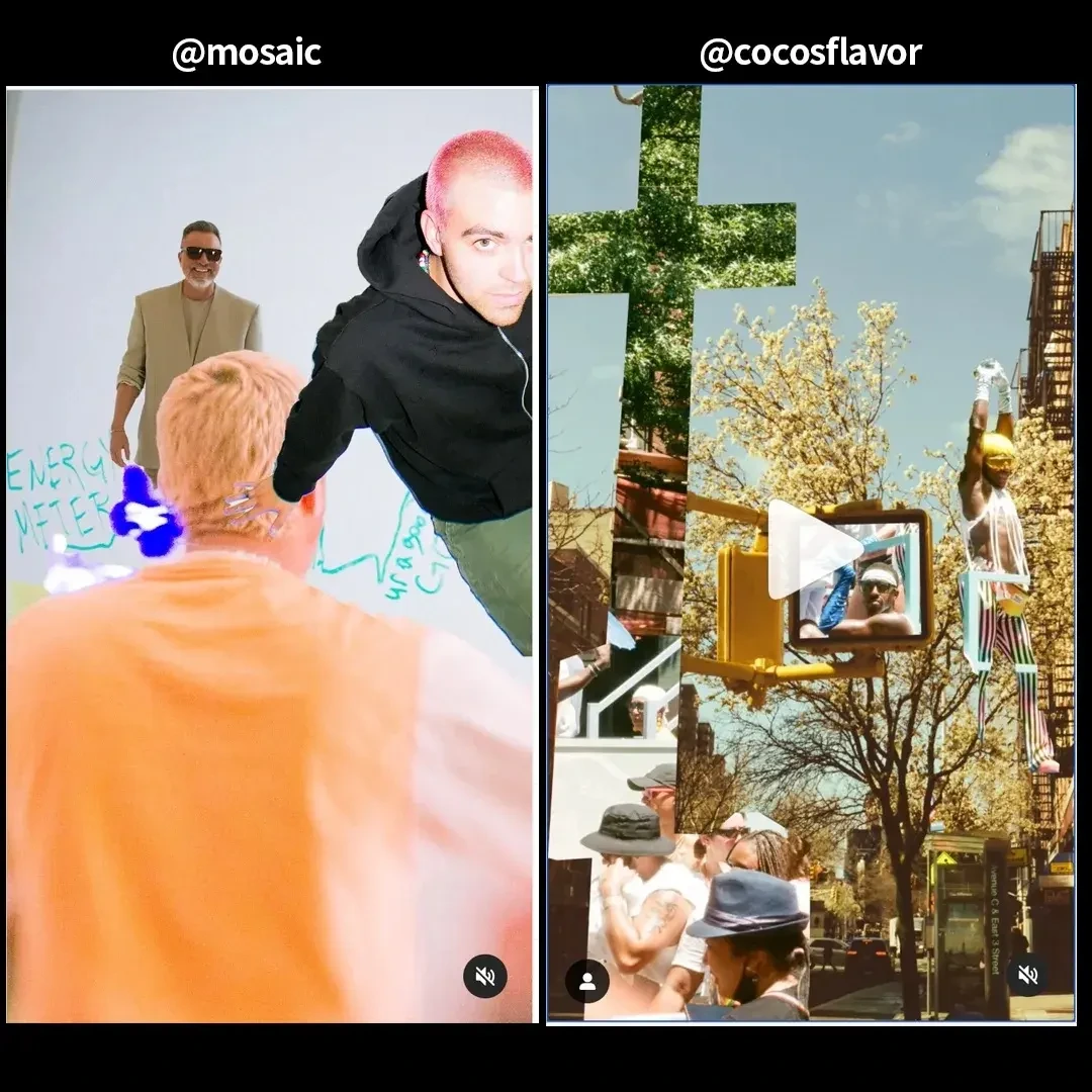 . 6. 콘텐츠 제작 공부. mosaic, cocosflavor 이게 릴스 템플릿으로 만든건지 모르겠으나, 콜라주 기법을 활용한 영상과 이미지가 많이 보인다. 나는 이 스타일의 콘텐츠 제작하는 것을 추천한다. 콘텐츠 덕분에 브랜드가 크리에이티브적으로 보인다. 내가 영상 전공자는 아니지만, 요즘에 마케팅적으로 잘되는 영상은 오히려 심플하고 효과없이 장면이 뚝뚝 넘어가거나 피사체가 콜라주처럼 띡띡-무심하게 나오는 영상인 것 같다.