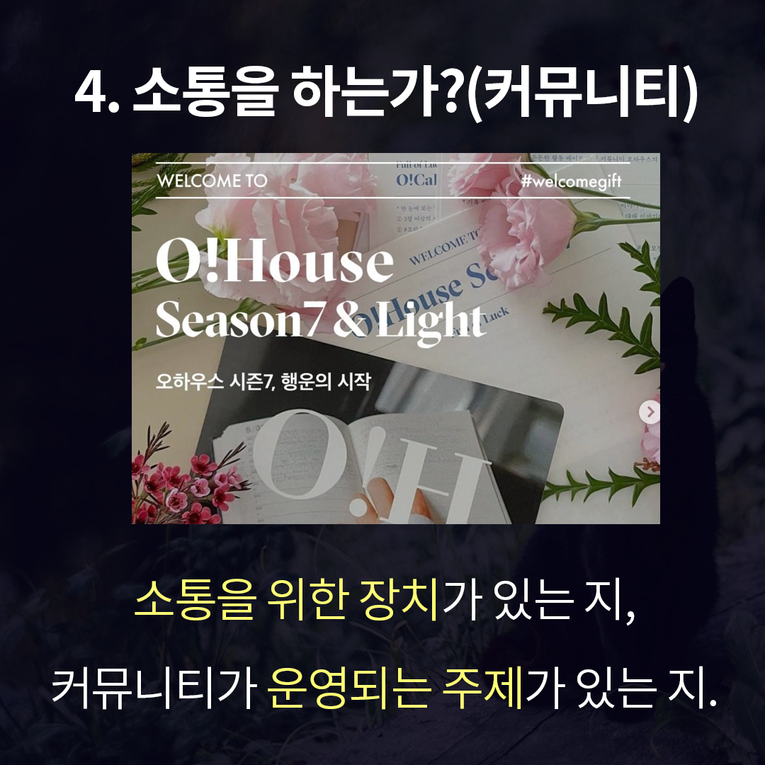 오늘의 집 커뮤니티 오하우스이다. 오하우스 커뮤니티는 인테리어에 진심인 사람들을 위해 만들었다. 오하우스 커뮤니티 사람들은 여기에 속하는 것에 대해 자랑스러워한다.