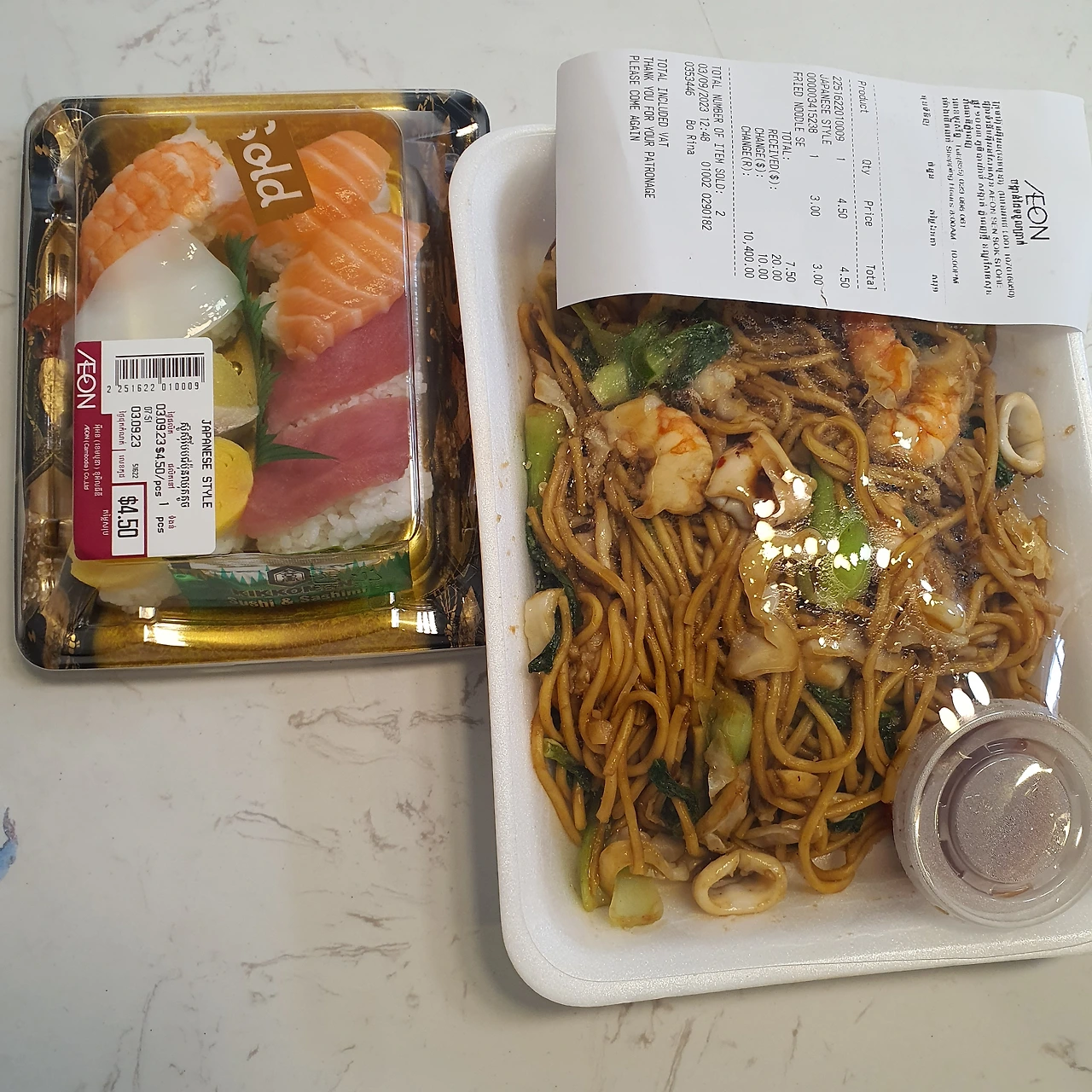 잠깐 쇼핑몰 구경을 하면서 점심으로 먹을 미차와 초밥을 구입했습니다.