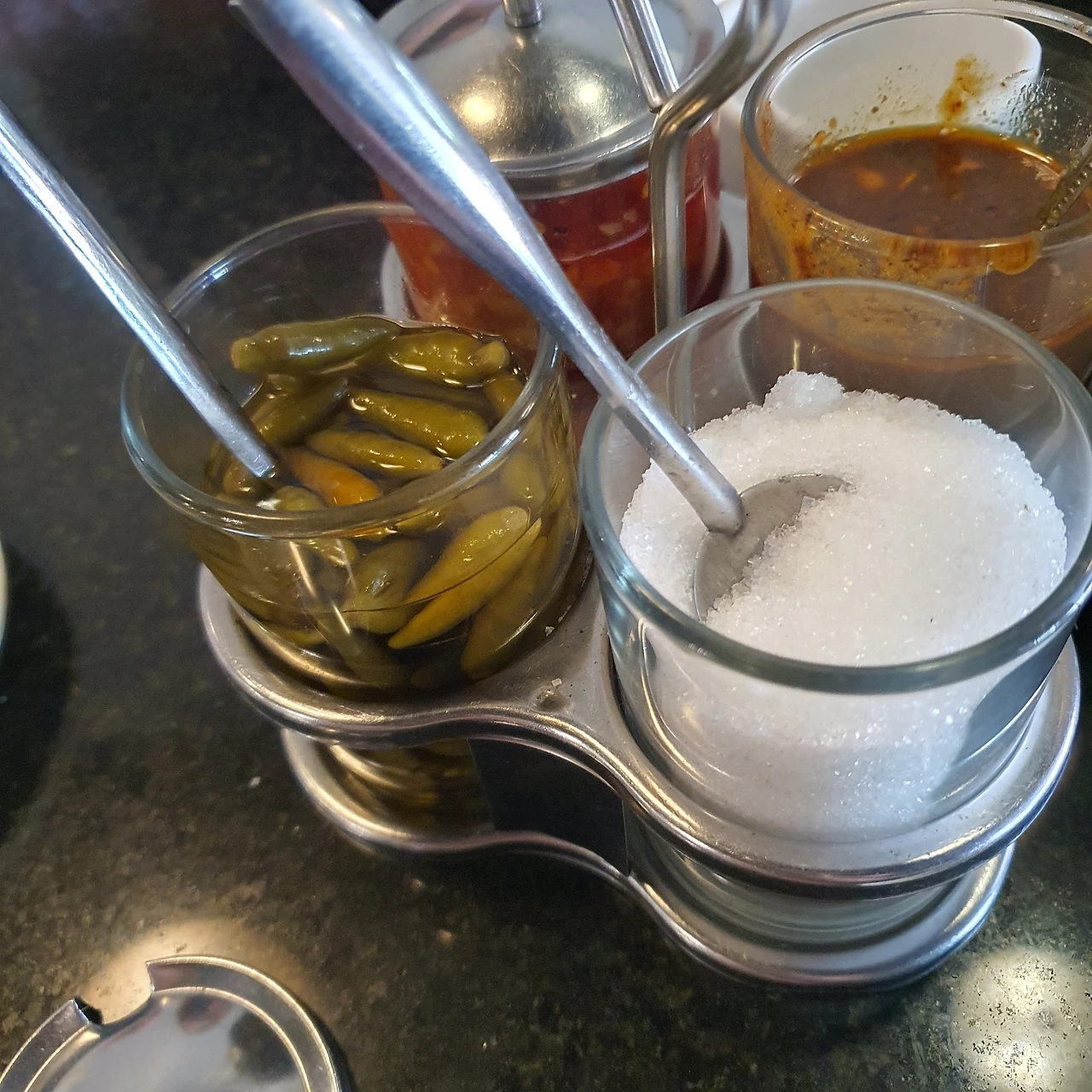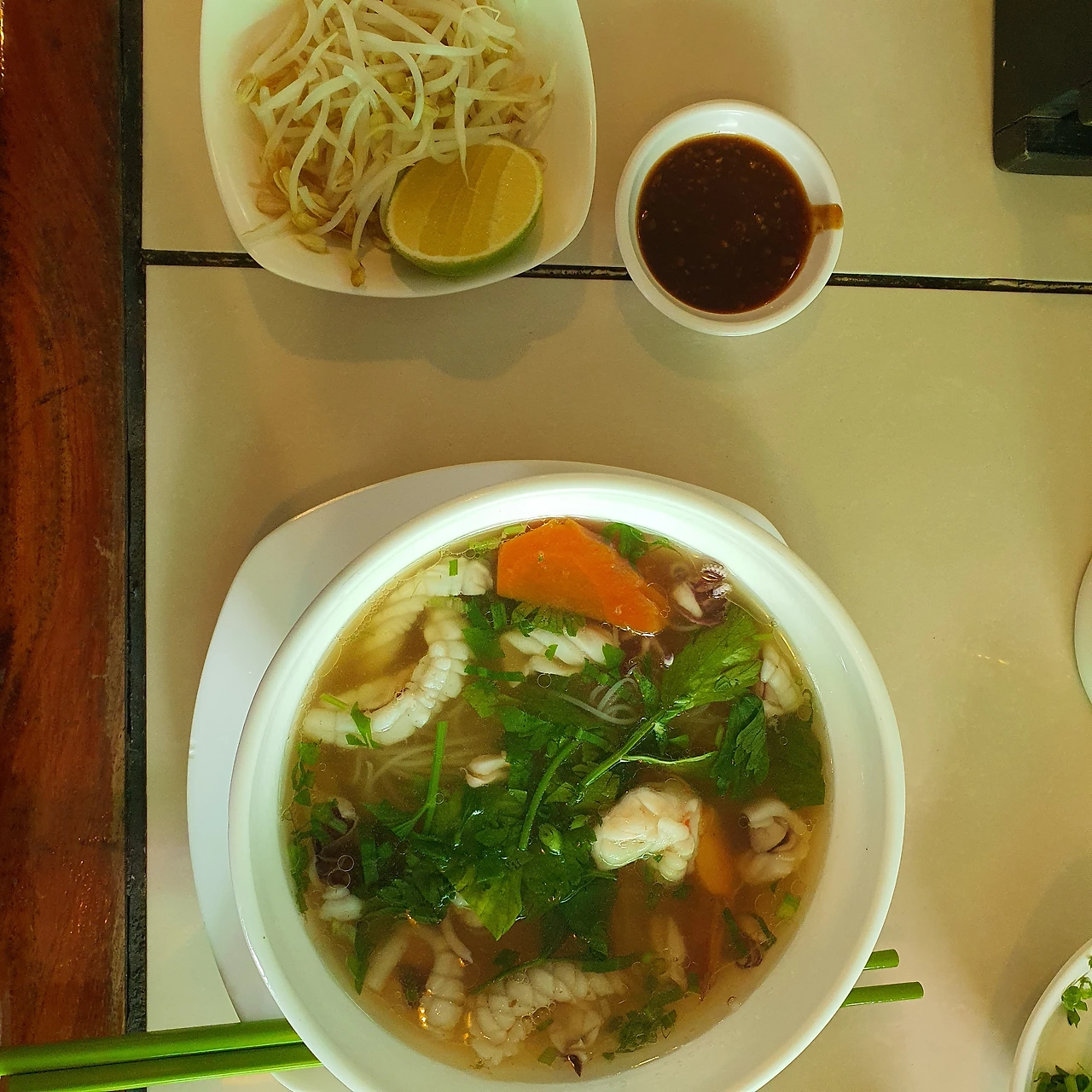 국물의 감칠맛, 얇음 면발의 쫄깃함, 해산물의 시원함, 거기에 반찬으로 먹는 고추짱아찌(머떼쮸)의 매콤, 달콤, 새콤함.