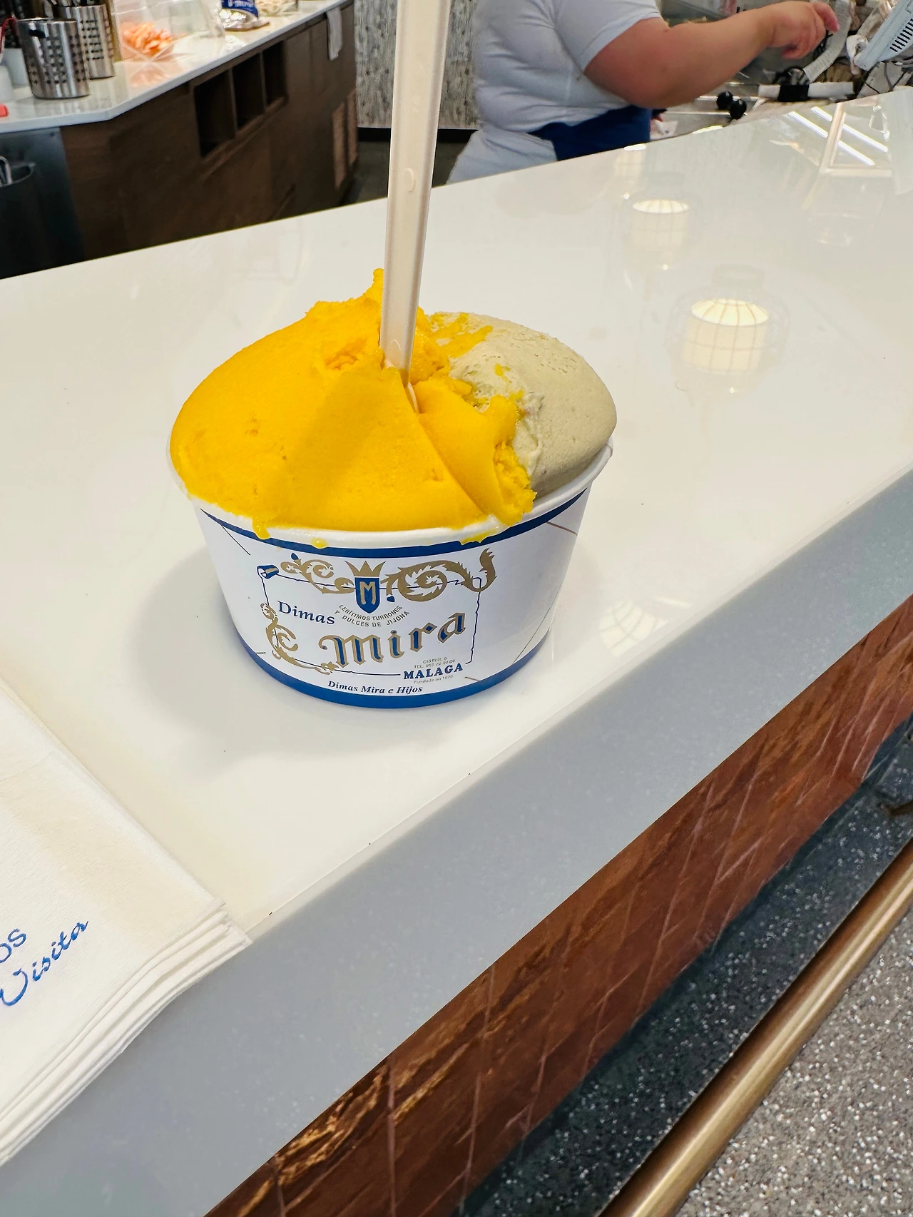 말라가에서 꼭 가보라고 추천받은 젤라또 집. 말라가에 Casa Mira가 2군데가 있는데 둘 다 맛있었다. 피스타치오는 말해 뭐해, 진짜 너무 맛있었고, 망고는 상큼하니 괜찮았다. 양도 많고 꾹꾹 눌러 담아준다.