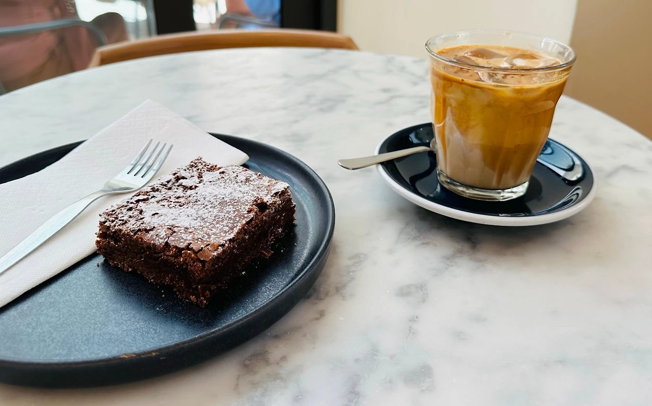 아이스라떼랑 브라우니 시켰는데 여기 브라우니가 정말 맛있었다. 겉은 바삭한데 안은 촉촉 그 자체!