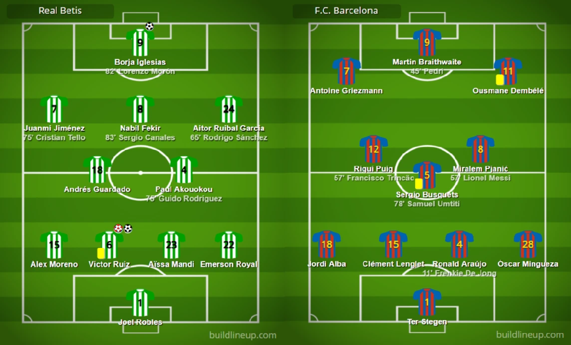 라리가 22라운드 경기에서 바르셀로나가 홈팀 레알 베티스를 상대로 역전승을 거뒀다. 이로써 바르셀로나는 초반 안 좋은 흐름을 완전히 털어내고 리그 6경기 연승 행진을 이어가며 리그 11경기 무패 기록을 이뤄냈다. 전반전 38분 이글레시아스에게 선제골을 허용하며 어려운 경기가 될 것 같았으나 역전승을 만들어냈다.