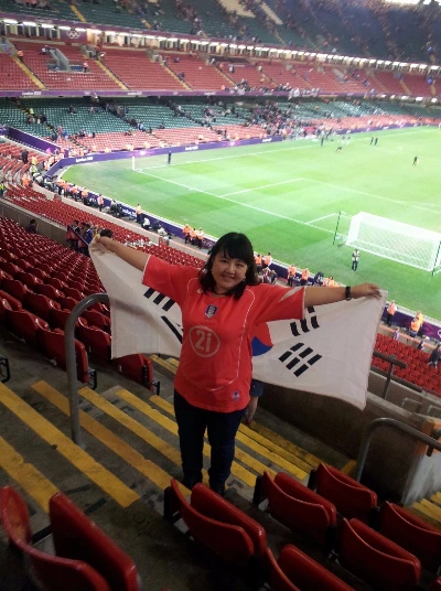 나는 영국에서 축구 보고 쓰고 즐기는 여자다