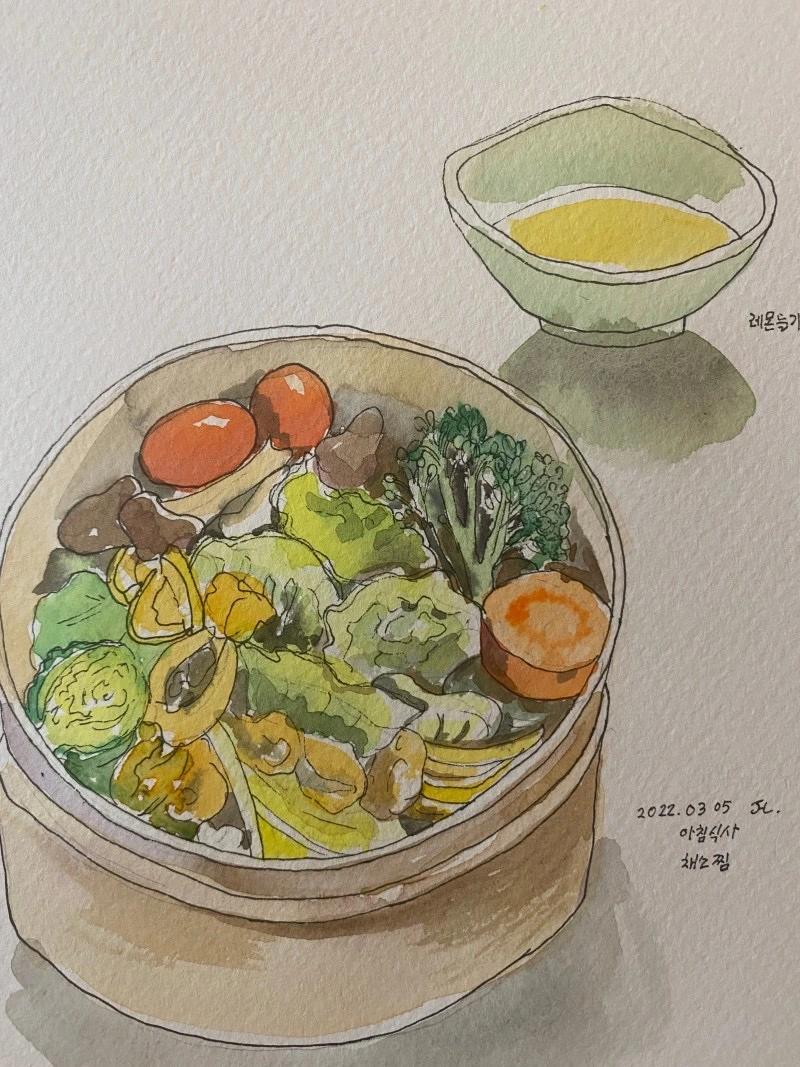 채소찜 그림은 토요일 일과 후에 그렸다.