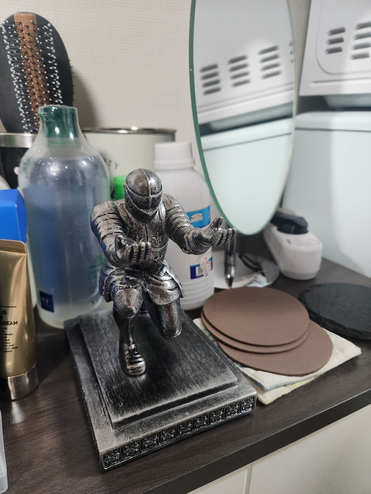 그렇게 운동을 하고 나면 조금 땀이 송골송골 맺히는데 샤워를 하면서 대충 씻어내고, 면도를 하면서 하루를 시작한다. 거울을 보면서 “오늘도 넌 할 수 있어!”라고 말하는 그런 요상한 자기 최면도 하지 않는다. 거울을 바라보는 건 면도가 똑바로 되고 있는지를 관찰할 때뿐이다. 빠르게 몸을 씻은 후에는 무조건 욕실을 차가운 물로 한 번 씻어낸다. 그리고 수챗구멍의 머리카락들을 휴지로 훔쳐서 변기에 넣고 물을 내린다. 2주에 한 번씩 욕실청소를 하기는 하지만, 얼추 깨끗한 물로 헹궈내야지 마음이 편하다. 욕실 밖으로 나와서는 화장실 문턱에 고인 물까지 몸을 닦은 수건으로 훔쳐낸다. 수건은 바로 세탁바구니에 넣기보다는 접어둔 빨래 건조대에 널어두고 하루가 지나면 세탁바구니에 집어넣는 게 일종의 규칙이다. 또 수건도 늘 순서대로 넣어두고 순서대로 꺼내서 쓴다. 그리고 스킨을 묻힌 화장솜으로 피부결을 정돈한 다음에, 사용한 화장솜으로 인센스 재들이 쌓인 홀더를 닦아낸다. 이후에는 기초 화장품을 바른 뒤, 머리 손질을 하면 아침의 루틴은 끝이 난다.