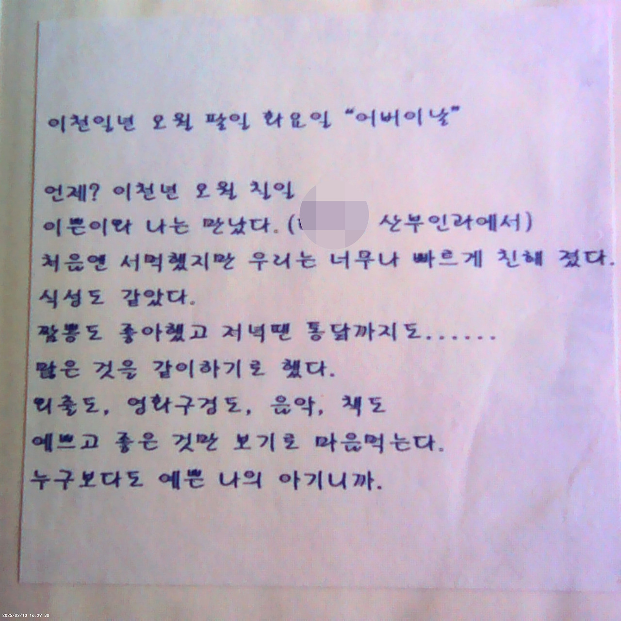 엄마가 아직도 휴대전화에 내 이름을 '오칠이'로 저장하고 옆에 ♡를 고민없이 붙이고는 미소짓는 모습을 보며