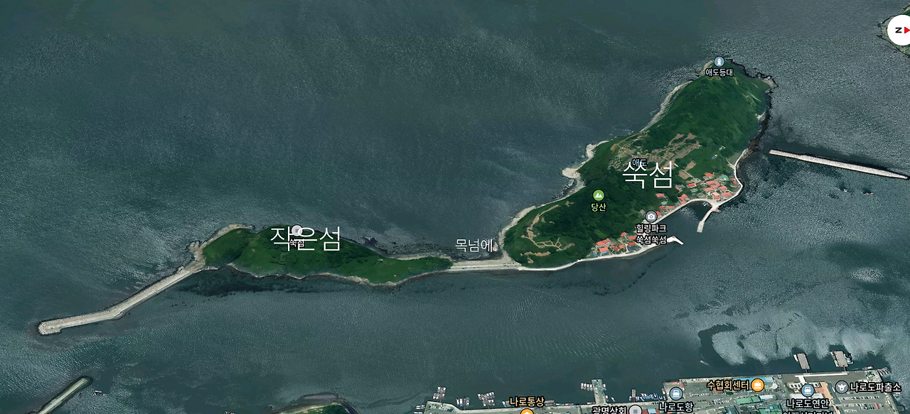 그곳은 바로 '쑥섬'과 '작은섬' 사이의 '물목'을 말합니다. 바로 아래의 그림에 표시된 곳입니다.