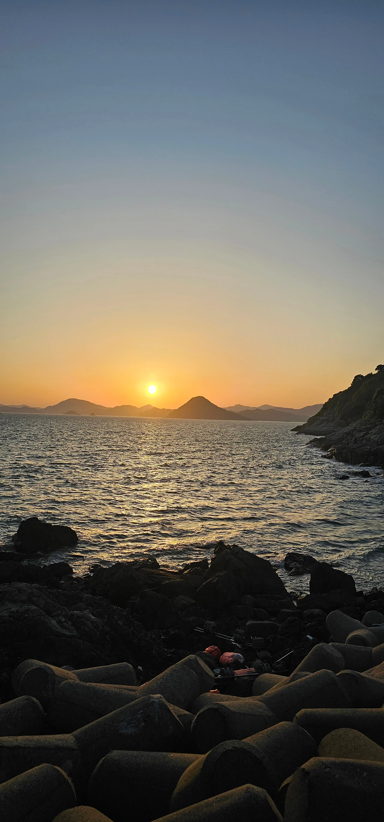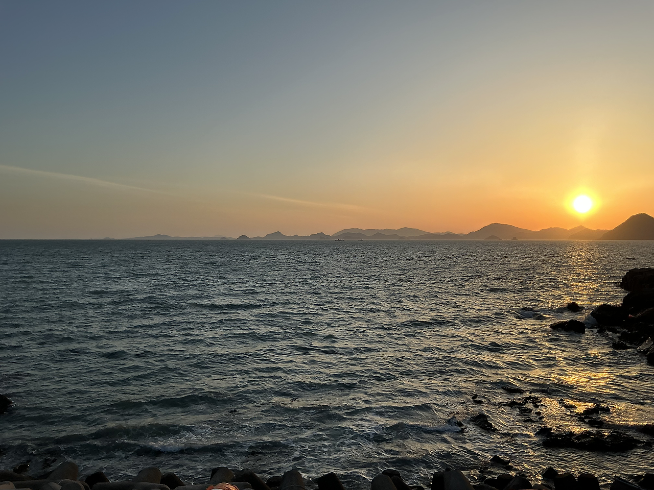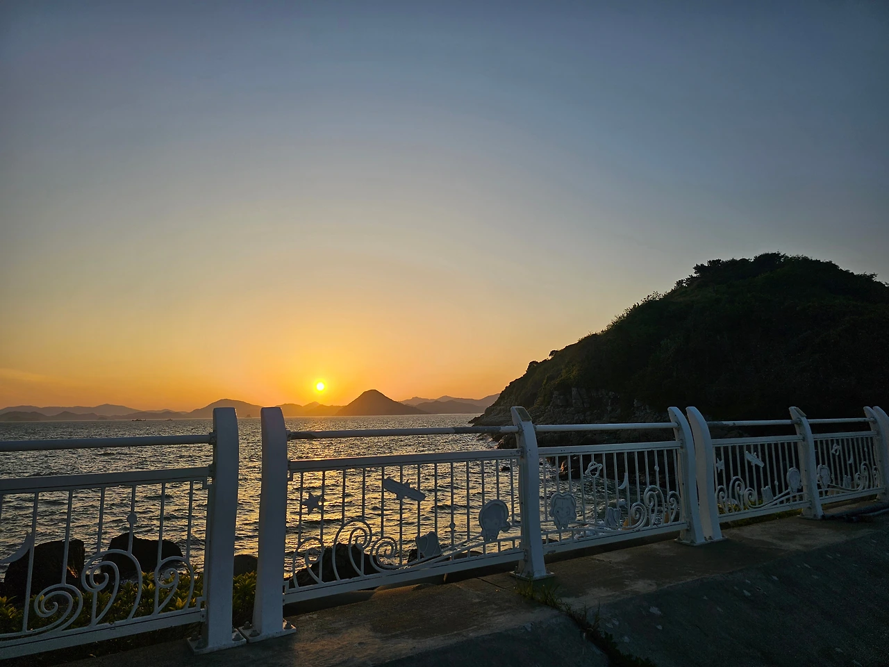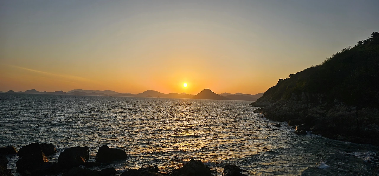 시산도, 수락도, 금산도가 보이는 장쾌한 서바다 풍경과 함께하는 아름다운 석양 명소