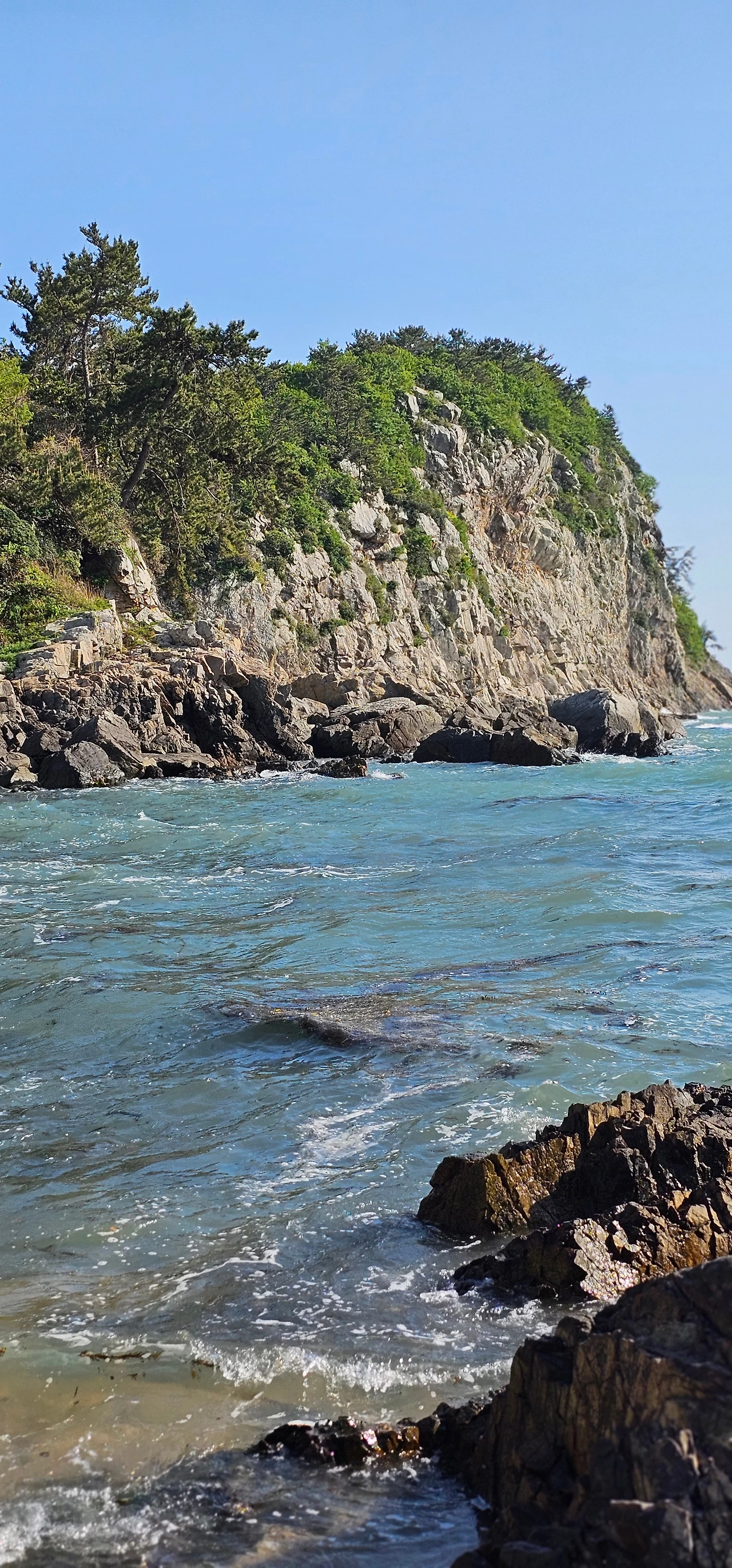해발 80m 언덕에서 거문도와 청산도가 보이며, ‘쑥섬 인어’와 ‘삼형제 절벽’이 있는 포토 명소