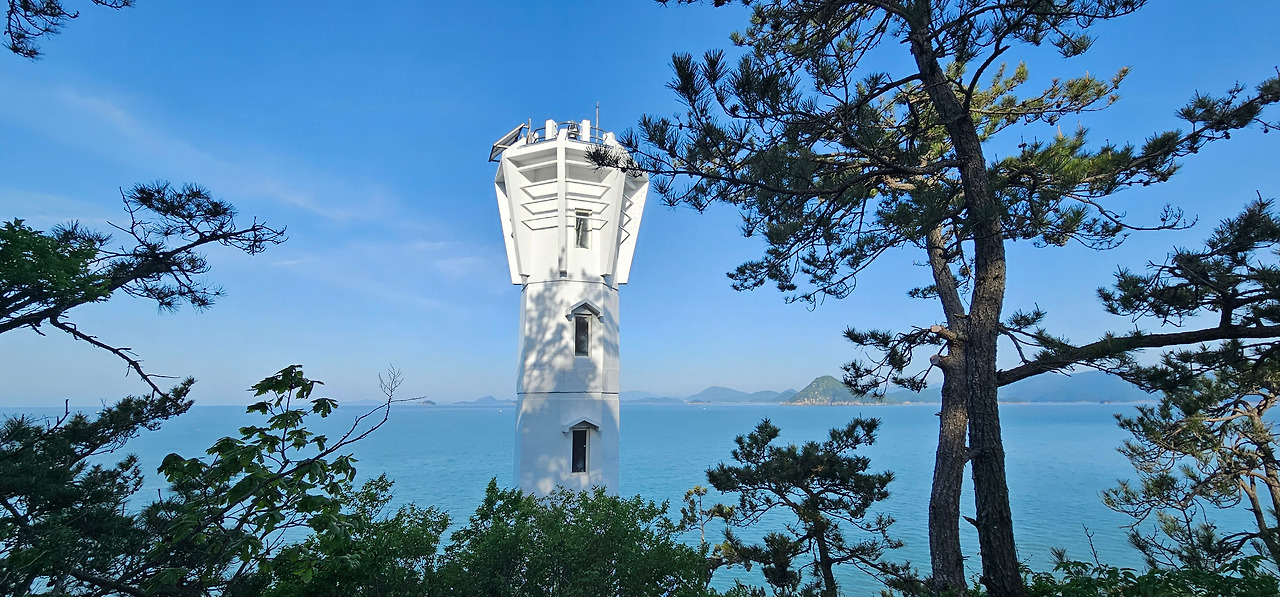 성화등대는 얼마 전까지는 사양도에 있었던 등대를 이곳 쑥섬의 '도런바구' 위에 지은 것으로 88 올림픽의 등대를 형상화해서 지은 등대입니다.