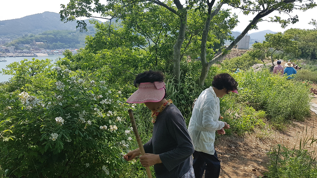 봄은 봄대로 여름은 여름대로 '쑥섬 몬당'에서 조망하는 나로도항의 전경과 꽃밭의 꽃들은 다른 색감과 색깔로 다가옵니다.