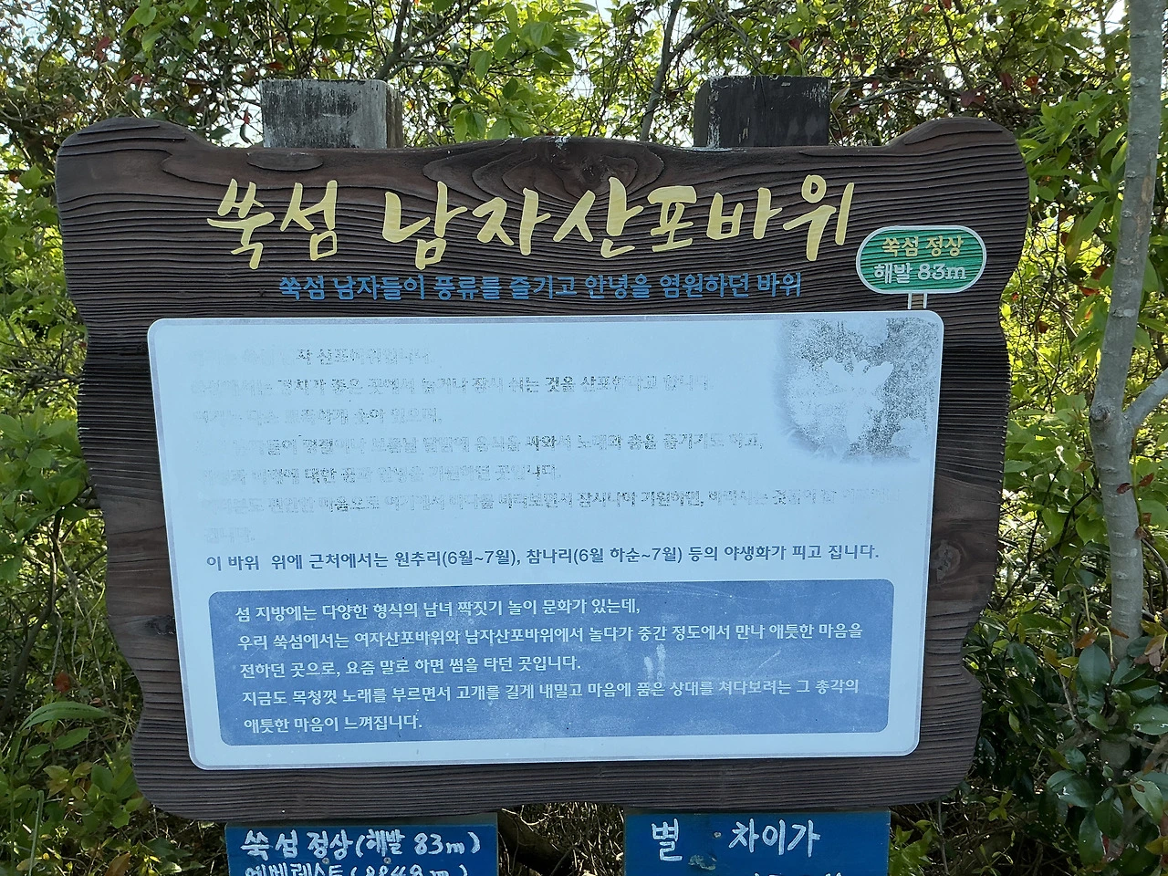 쑥섬에서는 섬 정상의 바위 너른 곳을 ‘산포’라고 불렀고, 그곳에서 노는 것을 ‘산포놀이’라 했습니다. 이 경우 ‘산포’는 ‘산의 너른 터’ 또는 ‘산 위의 바위마당’ 같은 의미를 지닌 지역어로 정리할 수 있어 보입니다.