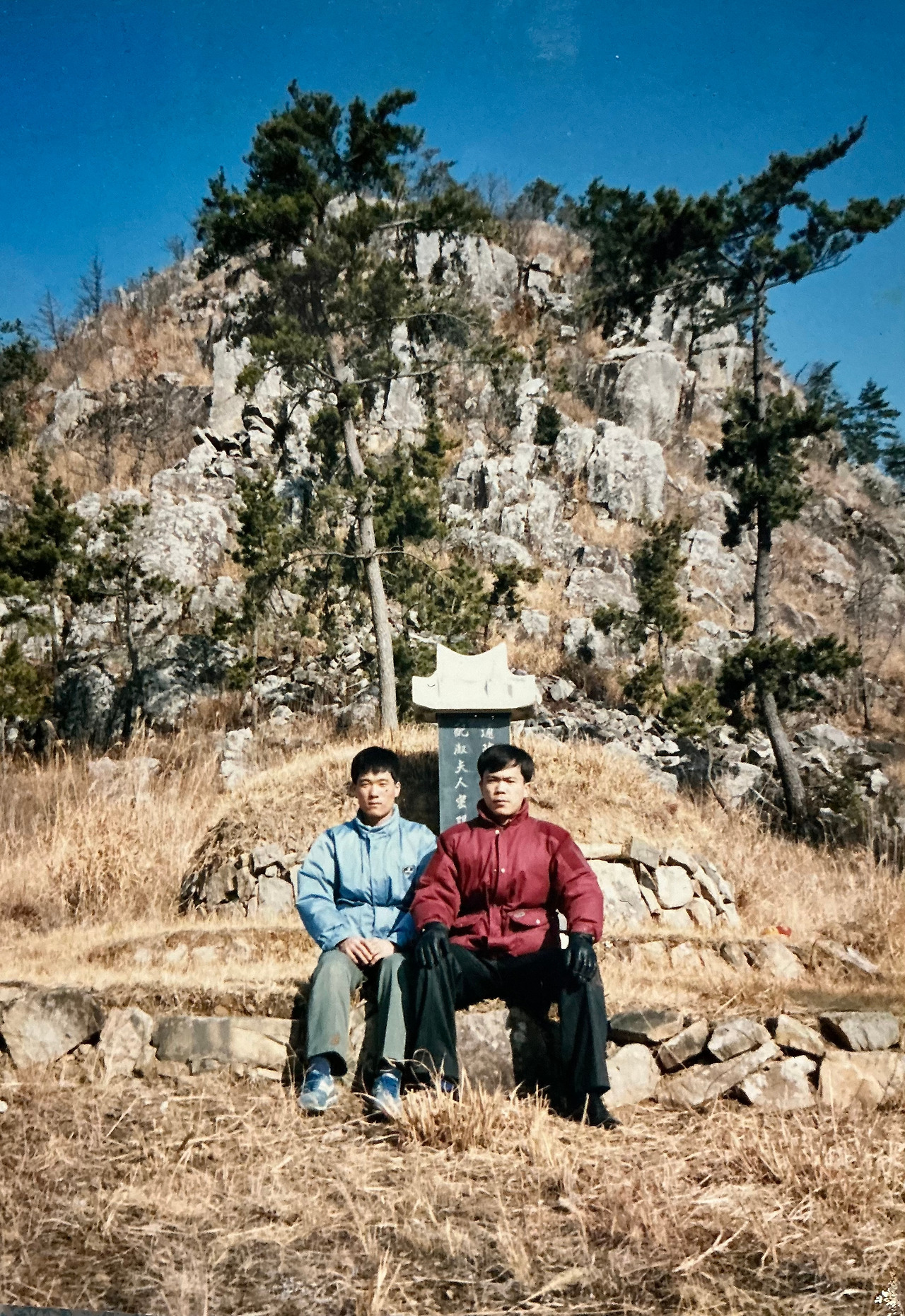 이 사진은 묘비석이 번듯하게 세워져 있는 1992년도 겨울에 동생과 함께 찾은 선산의 모습입니다(동생은 왼쪽, 오른쪽이 필자)