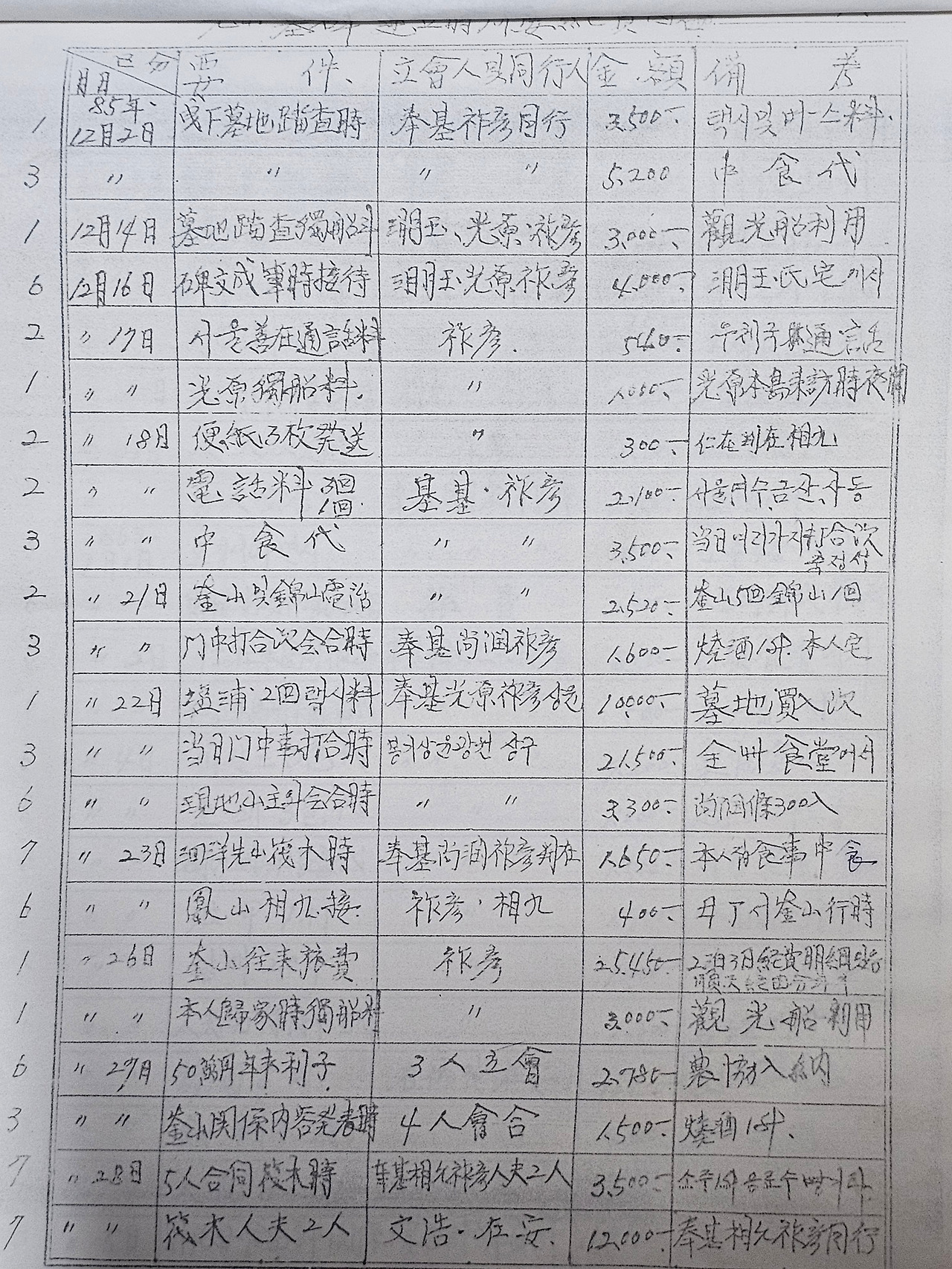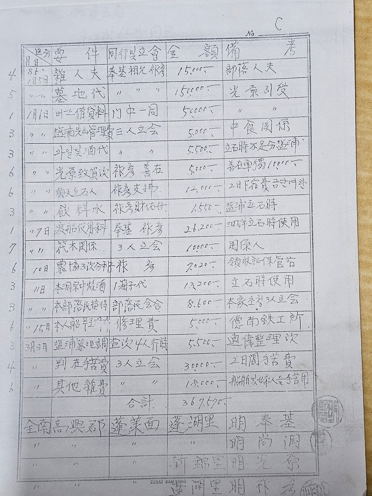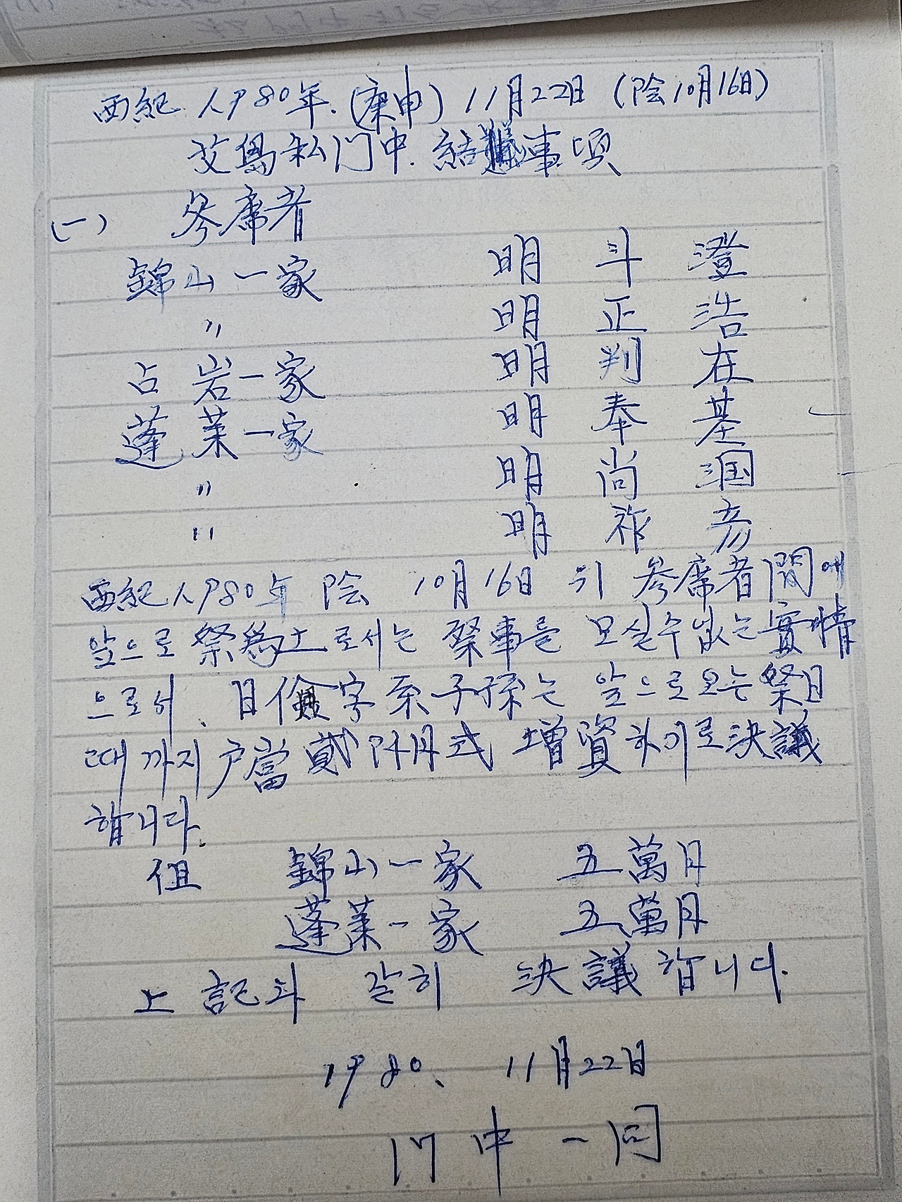 그렇게 모금한 성금으로 비석을 제작하고 운반하고 그리고 제막식까지 하고 난 이후에 결산을 한 내역을 다시 전체 일가들에게 보내느라 필사를 한 기록들이 남아 있어서 하나하나 들여다 보면서 지금의 우리는 과연 무엇을 하고 있는가 하는 마음이 들었습니다.
