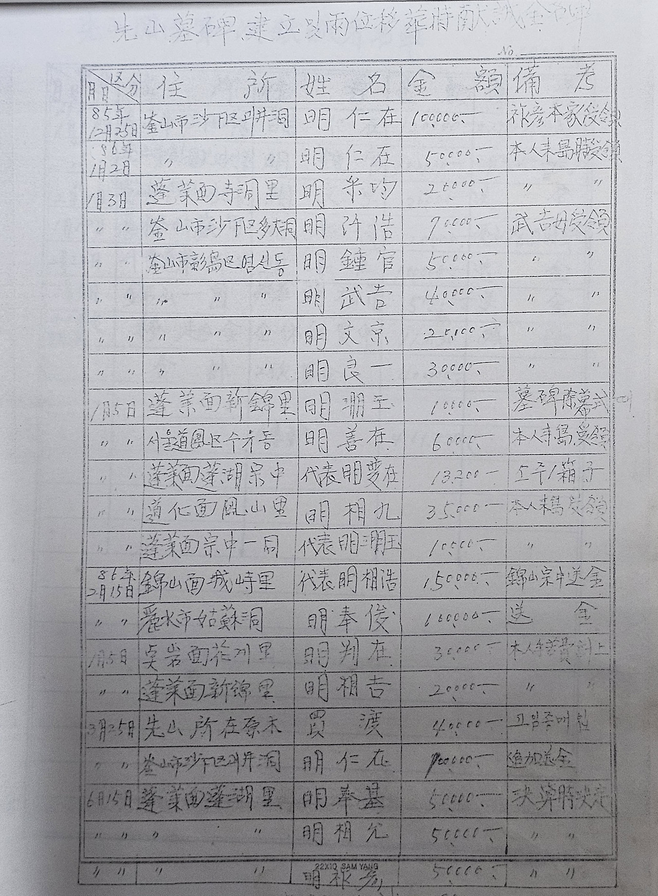 조상의 묘비석을 준비하기 위해 결연한 의지와 자손들의 번영을 위해 동참을 해 주시기를 간곡하게 요청을 하고 있는 결연함을 엿볼 수가 있을 듯 합니다.
