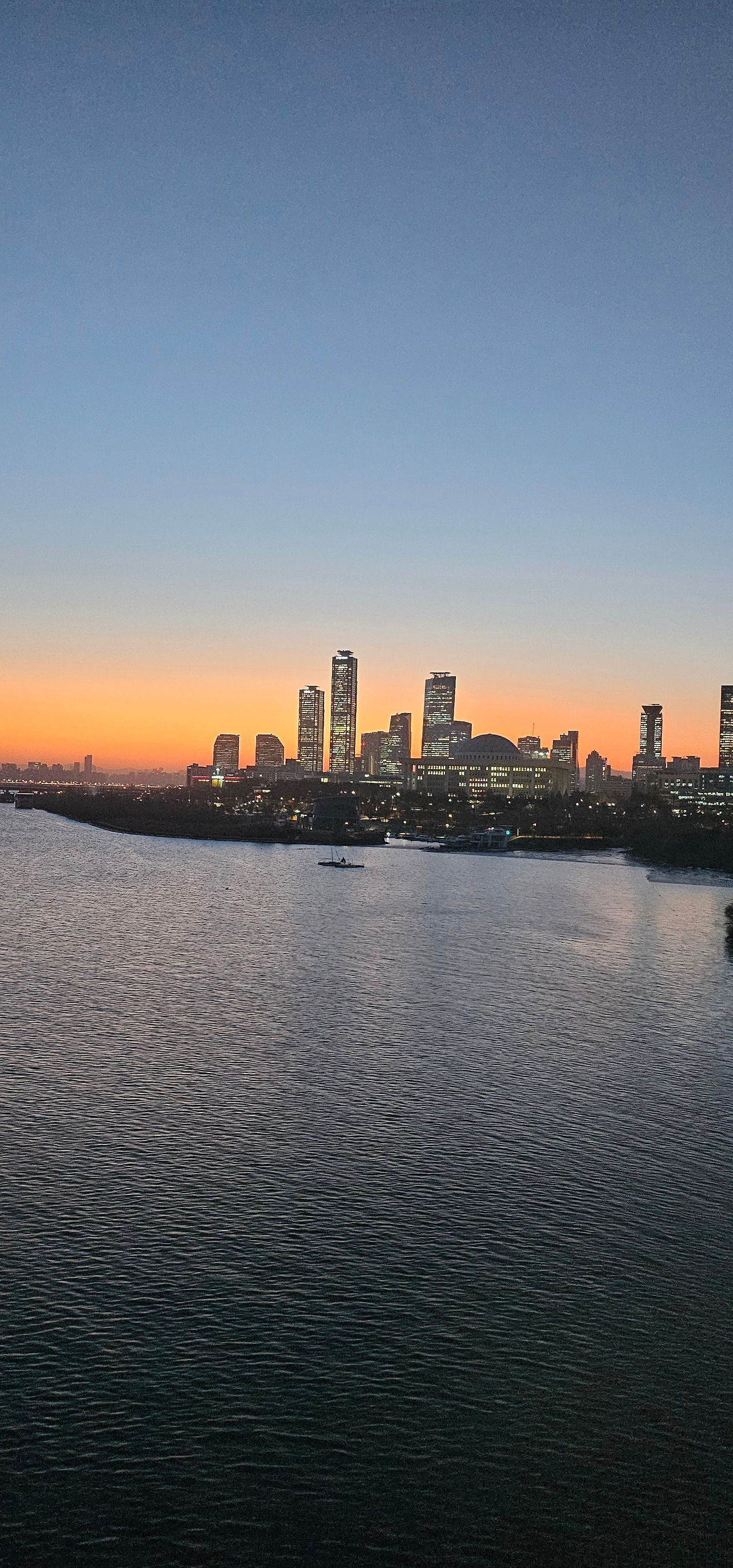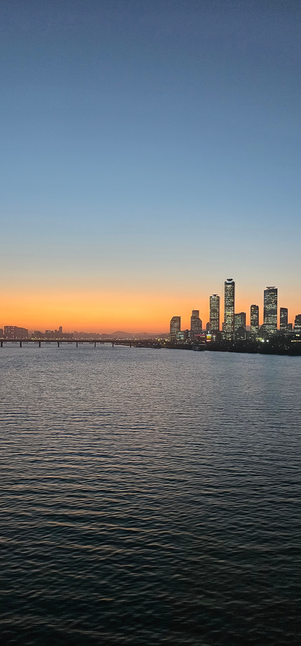 날이 추워 꽁꽁 얼어붙은 강물 위