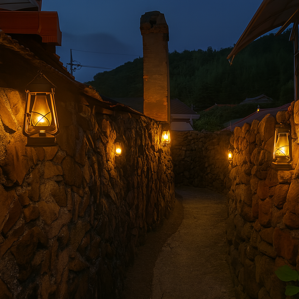 집집마다 등을 켜들고 나와 초상집으로 드는 돌담길