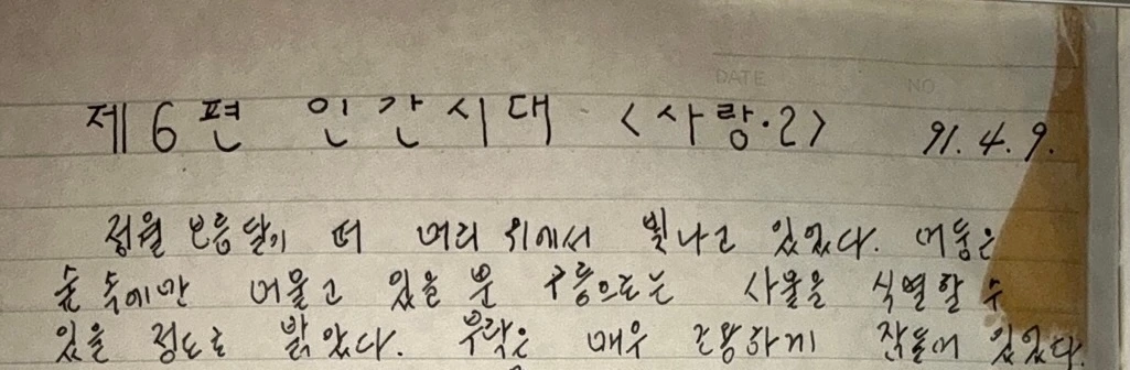 너무나 엉뚱하였고 예측하지 못한 벽에 부딪힌 김 감독이 반 작가의 메모 노트만을 챙겨 원시의 어둠 속으로 빠져 들어갈 즈음 나는 그 자리에 주저앉아 버렸다. 그의 광기가 너무나 가슴을 찌르고 있었기 때문이었다. 내 조차도 예상하지 못했던 그의 출현과 거대한 책망의 벽이 가슴을 아프게 하였다.