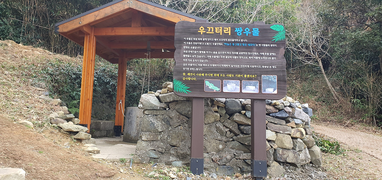 우끄터리 샘은 사람들이 사는 부락에서 한참을 걸어서 와야 있었다. 원체 섬에 물이 귀하다 보니 허드렛물이나 빨래를 위해서는 여기로 와야 했다. 먹는 물은 부락 안에 있는 샘에서 길어다가 먹지만 빨래는 집집마다 빗물을 받아 두었다가 쓰던지 '빨래샘/지금의 쌍우물'이라고 부르는 우끄터리 끝에 있는 이 샘까지 와야 했다.