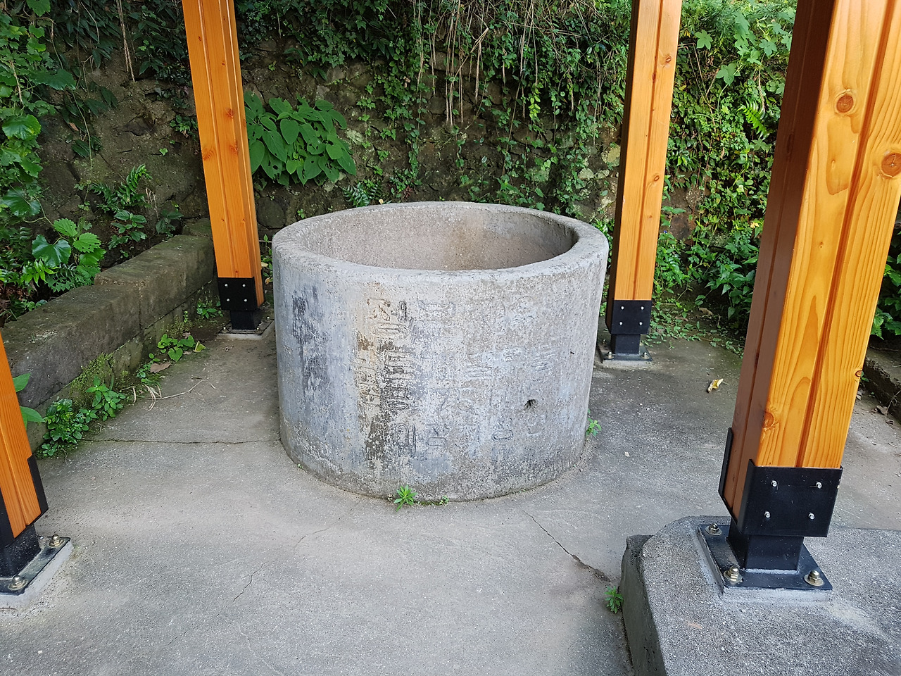 '우첨/윗마을'이라고 하는 곳에 위치하고 있는 '덤불샘'과 함께 1925년 2월 2일에 중수되었는데 '共同 우물 2개소(큰샘, 덤불샘) 大石 四角 重修, 洞頭民 朴氏 孝德 後援 慶南 河東 大石 賣入'이라고 기록되어 있는 것을 확인할 수 있습니다.