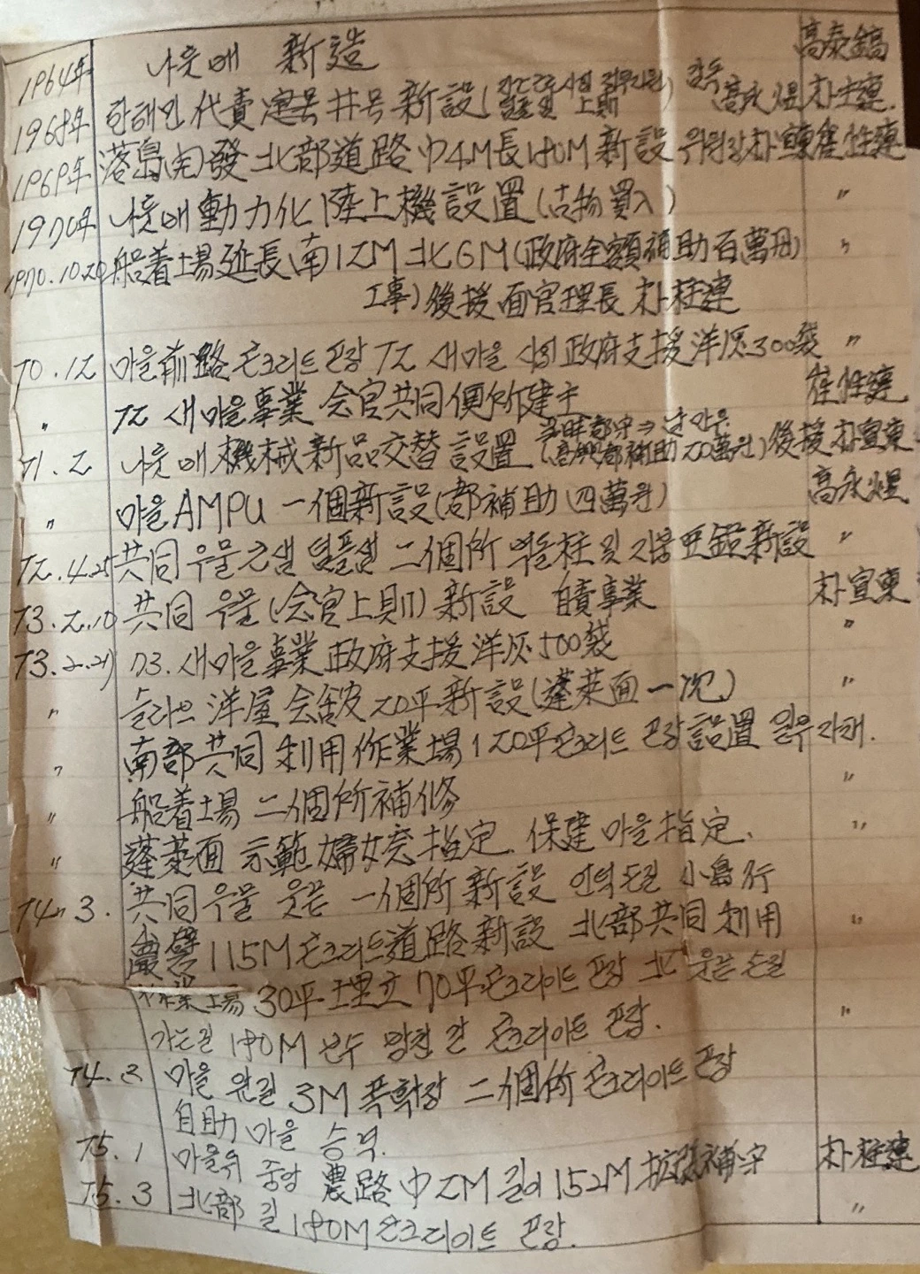 1964년 : 나룻배를 새로 건조하였다. 당시 이장은 고태호였다.