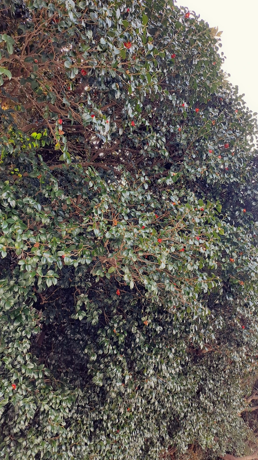 날아드는 동박새로 이제야 꽃이 피고 있어요.
