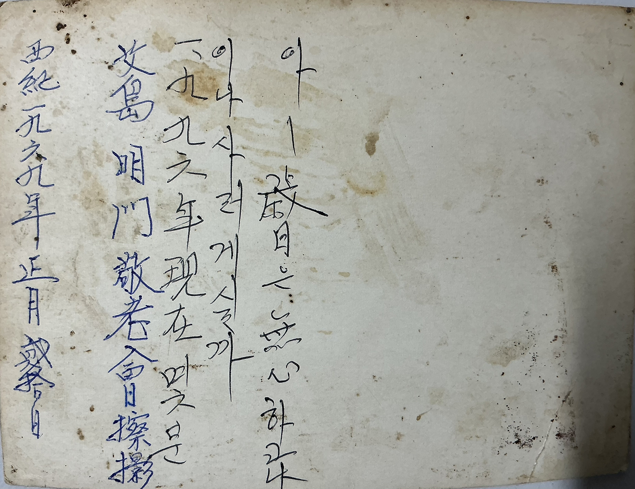 사진의 뒷면에는 다음과 같이 쓰여져 있습니다.