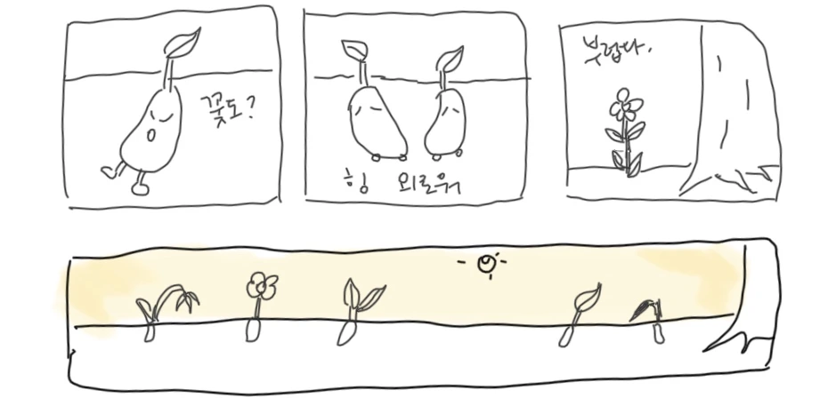 그리고 어떤 종자는 더듬더듬 새싹을 뻗어 무리 지을 다른 종자를 찾기도 한다.