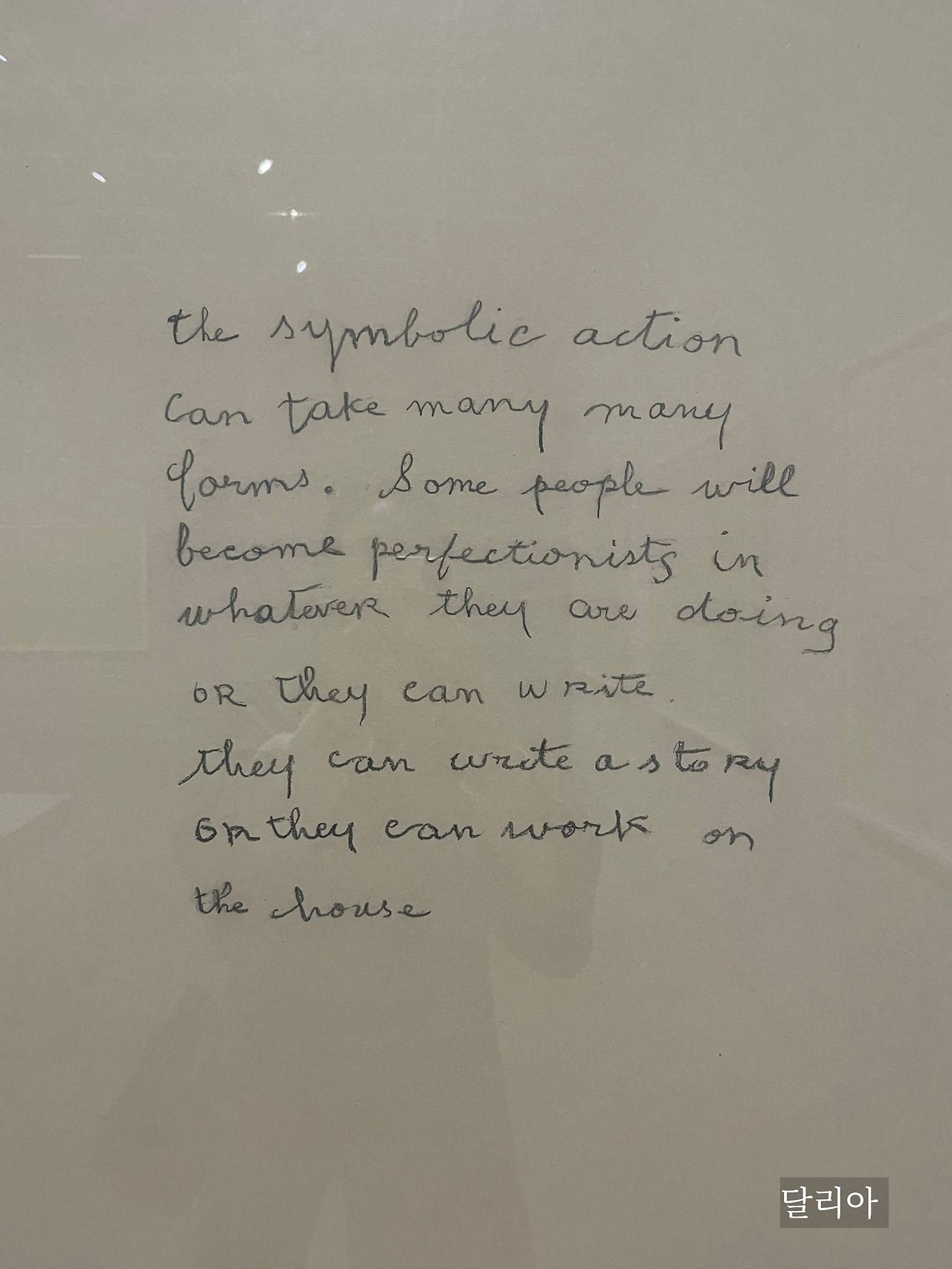 "혼돈이 나를 덮쳐올 때가 여전히 있다. 그 순간 나는 상징적 행위를 택한다.