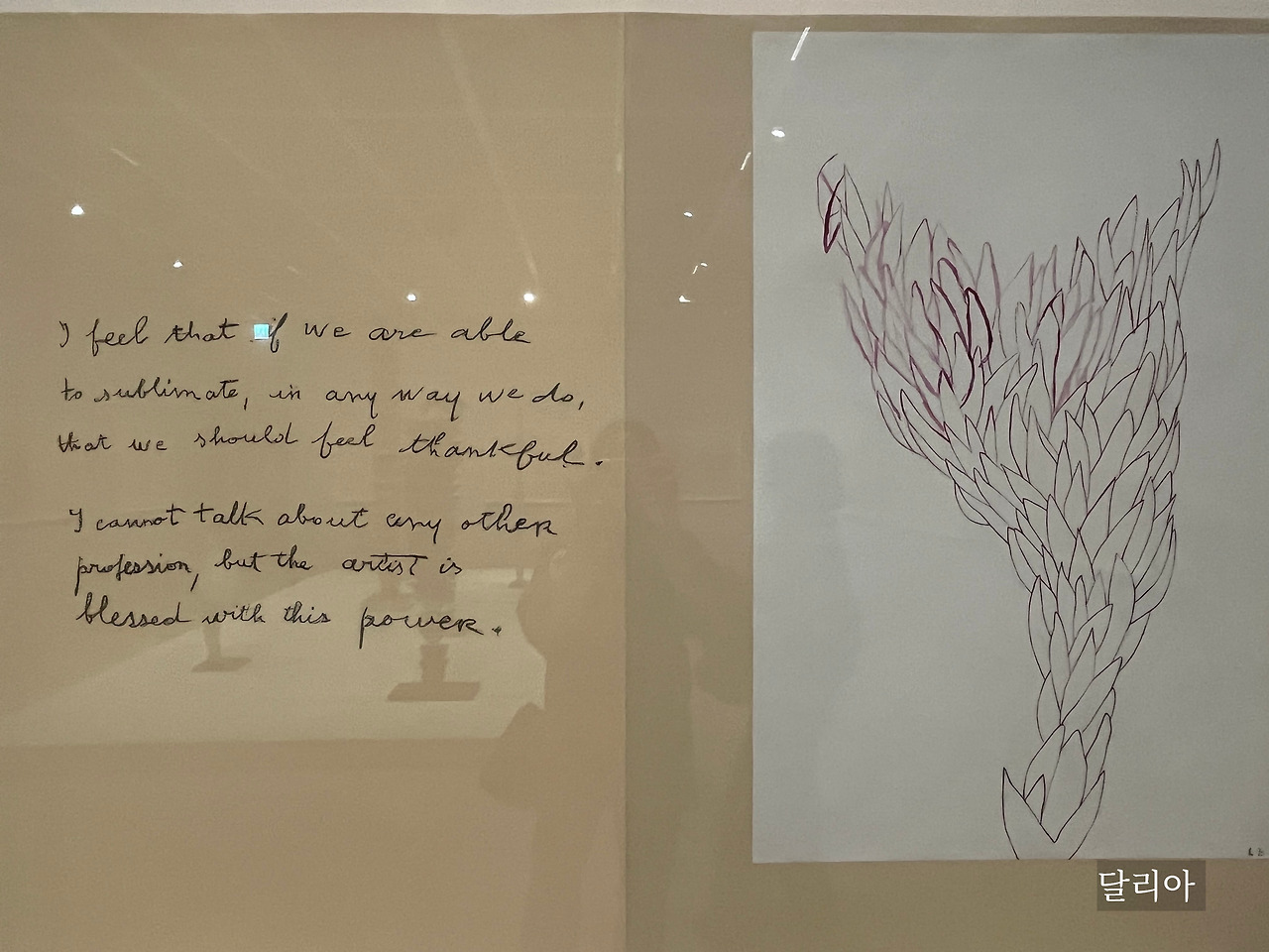 루이스 부르주아는 오랜 시간 자신의 내면을 집요할 정도로 파고들며 자신의 고통을 예술로 승화시켰다. 어쩌면 인간다움이란 고통을 직면하며 포기하지 않고 스스로를 들여다보려는 그 시지프적 노력 속에서 유지되는 것일지도 모르겠다.