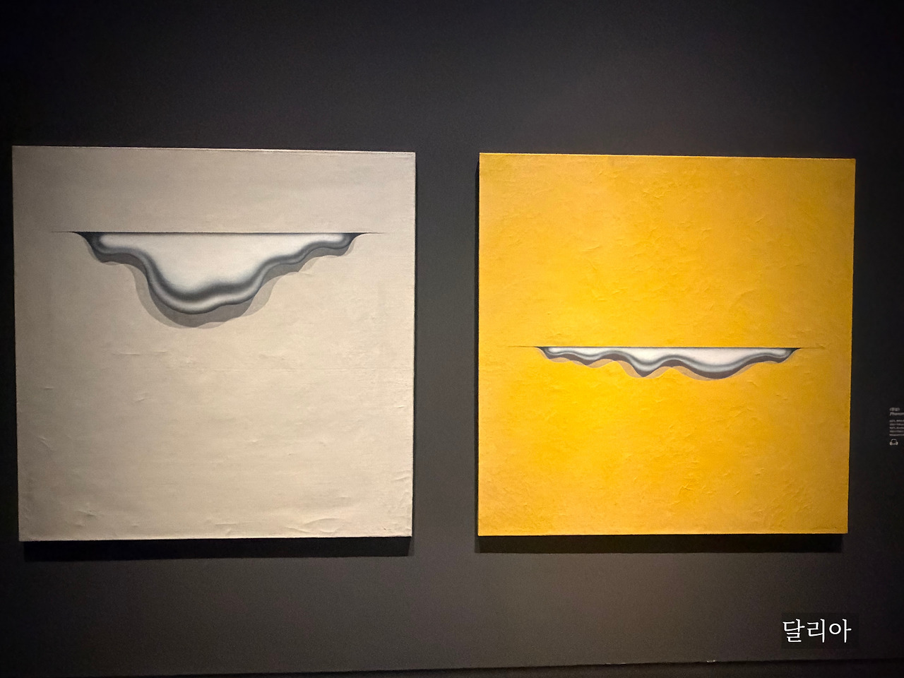 1969년 그는 파리로 거처를 옮긴다. 이 시기에는 넓은 색면 위에 점액질의 액체가 흘러내리는 <현상> 시리즈가 탄생한다. 캔버스의 찢긴 틈 사이로 흘러내리는 듯한 액체덩어리는 마치 물성을 지닌 것처럼 보인다. 프랜시스 베이컨의 영향을 받았다고 밝힌 만큼 그 이면에 깃든 육체성과 폭력성도 엿볼 수 있다. 끈적이던 형상은 1971년 투명한 물방울로 변화하게 된다. 캔버스를 재사용하기 위해 뿌려둔 물방울이 맺히는 걸 본 순간 그토록 오랫동안 탐구해 온 구체의 완성형이자 그만의 조형언어를 발견한 것이다. 그렇게 하여 탄생한 첫 물방울 작품이 스프레이라커를 이용해 제작한 <밤에 일어난 일>이다.