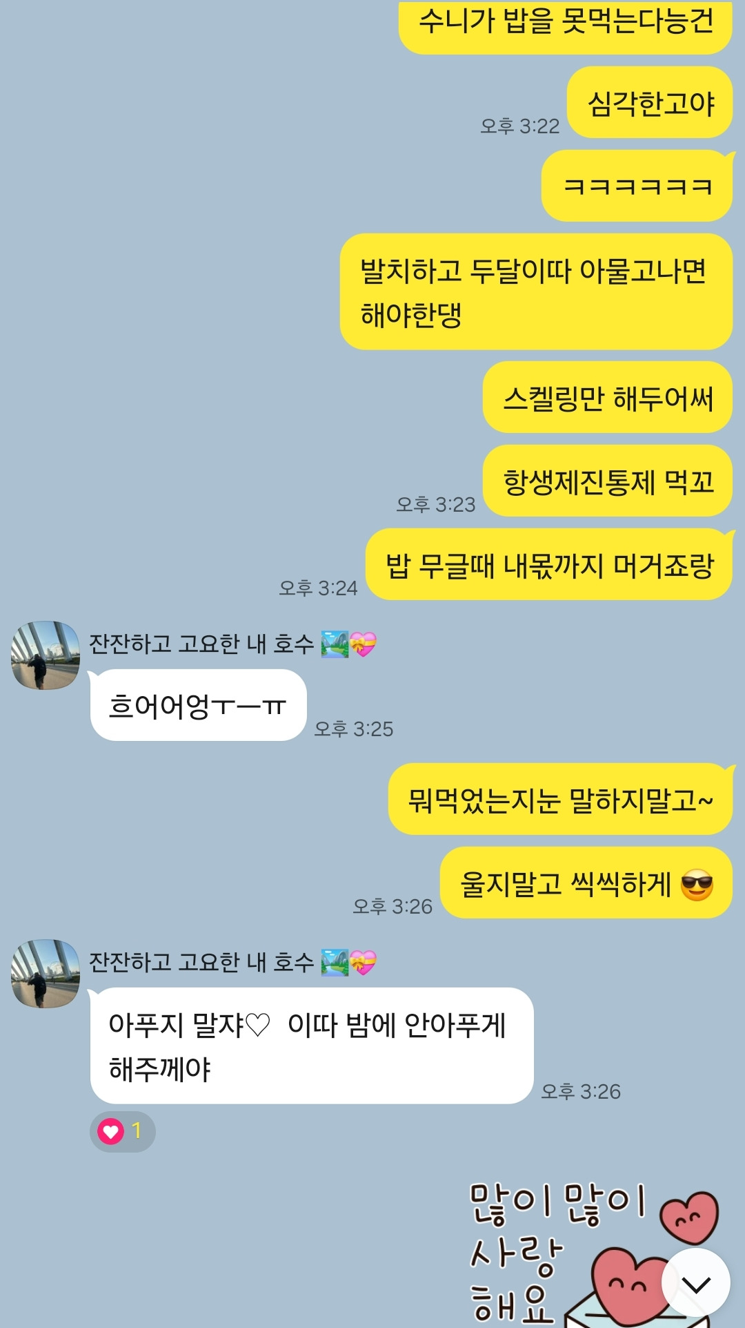 믿는 언덕이 생긴 난 어느새 아픈 걸 솔직하게 표현하며 자연스럽게 '의존'이란걸 하고 있다.