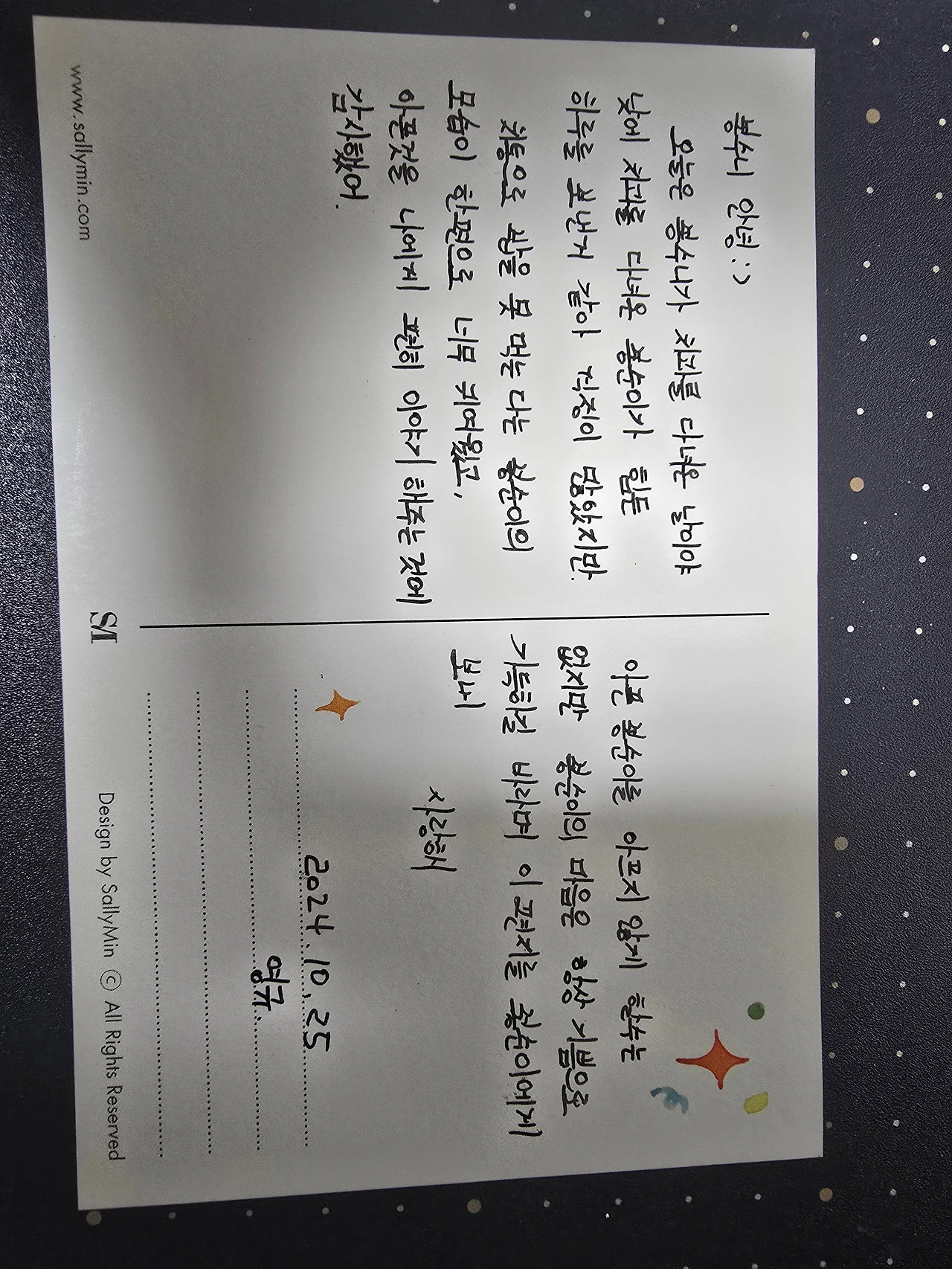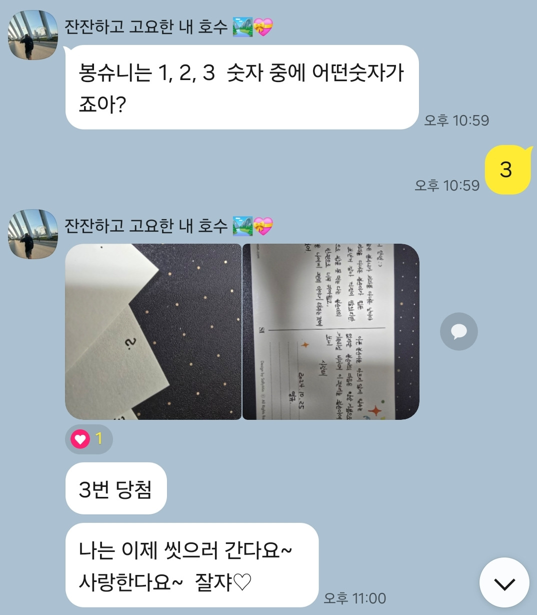 내게 하고 싶은 말을 편지로 쓰고 시간이 지나서 그중 무작위로 주면 어떨까 생각했다고 한다.