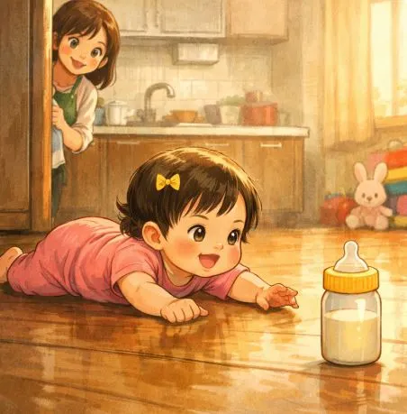 어느 날 아침, 나는 떨리는 마음으로 작은 시험을 준비했다. 늘 아이를 안아 따뜻한 우유병을 입에 물려주던 일상을 잠시 멈추기로 한 것이다. 아침 우유 이후 간식을 주지 않아 배가 출출해질 즈음, 아이의 시선이 가장 잘 닿는 곳에서 3m 정도 떨어진 거리에 우유병을 놓아두었다. 나는 설거지를 하는 척, 혹은 욕실 청소를 하는 척하며 아이의 동태를 살폈다.