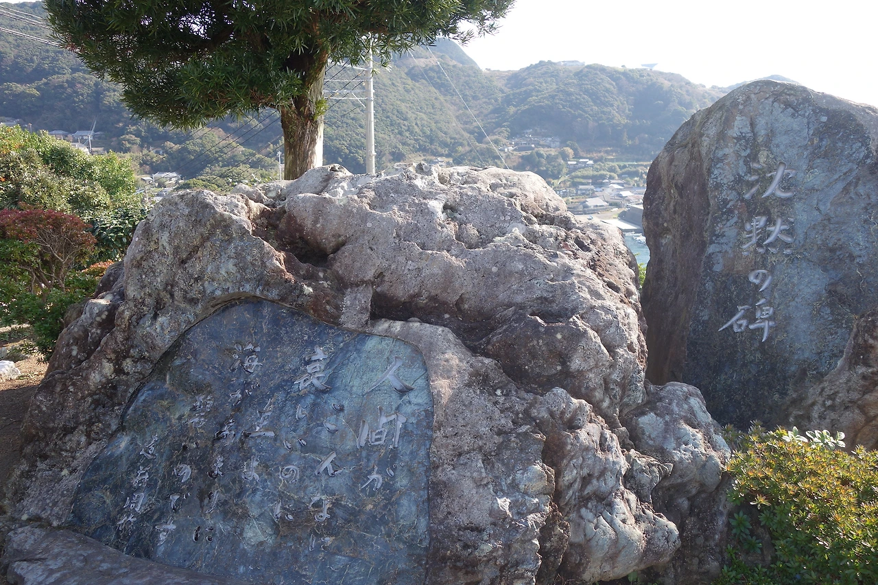 '나가사키 소토메'에 있는 침묵의 비에 쓰여진 "人間がこんなに哀しいのに,主よ,海があまりに碧いのです。"(인간이 이렇게도 슬픈데, 주여, 바다가 너무나 푸릅니다.)