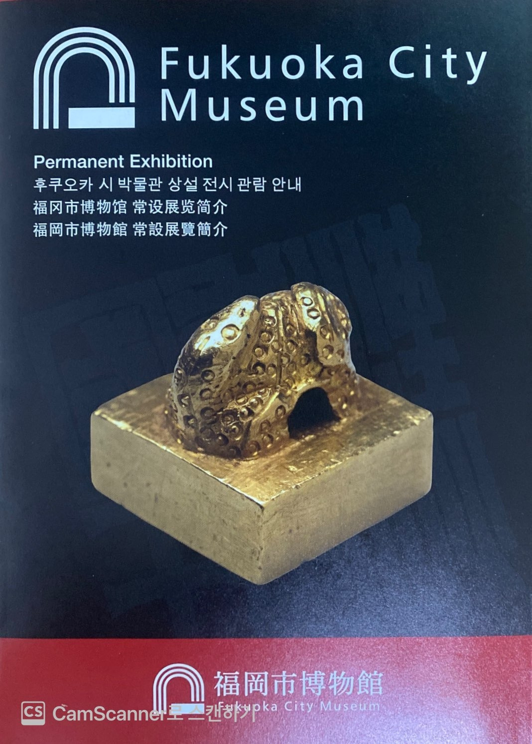 이곳 '후쿠오카시 박물관'이 자랑하는 유물은 '중국 후한서'에 등장하는 '광무제'로부터 국가로서 처음 인정받아 하사 받은 금 도장이다. 상설전 입구에 단독으로 스포트라이트를 받으며 등장하고 있었다.