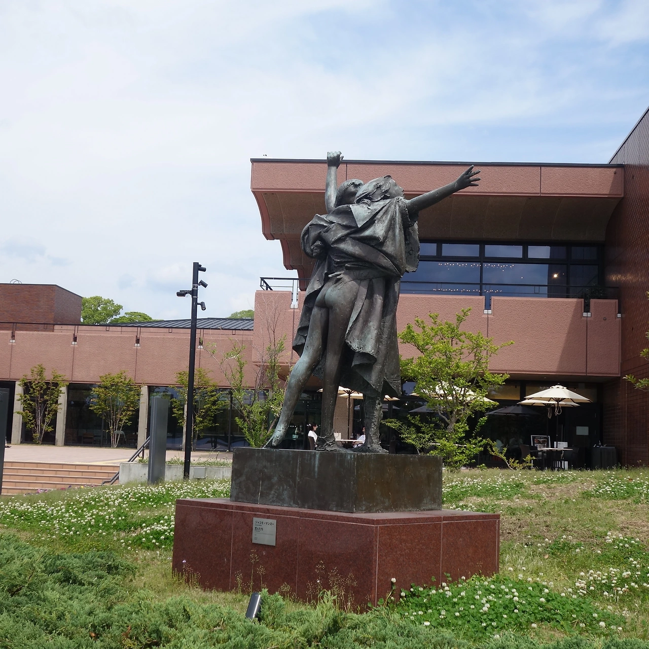 입구 오른쪽 스커트 입은 여성의 엉덩이를 남성이 만지며 서로 포옹하고 있는 남녀의 조각상도 야하지 않은 사랑이 갖는 설레는 순간을 빛나게 포착하고 있었다. 마음에 파문을 내는 포즈에 지나친 발걸음을 돌이켜 사진에 담았다.