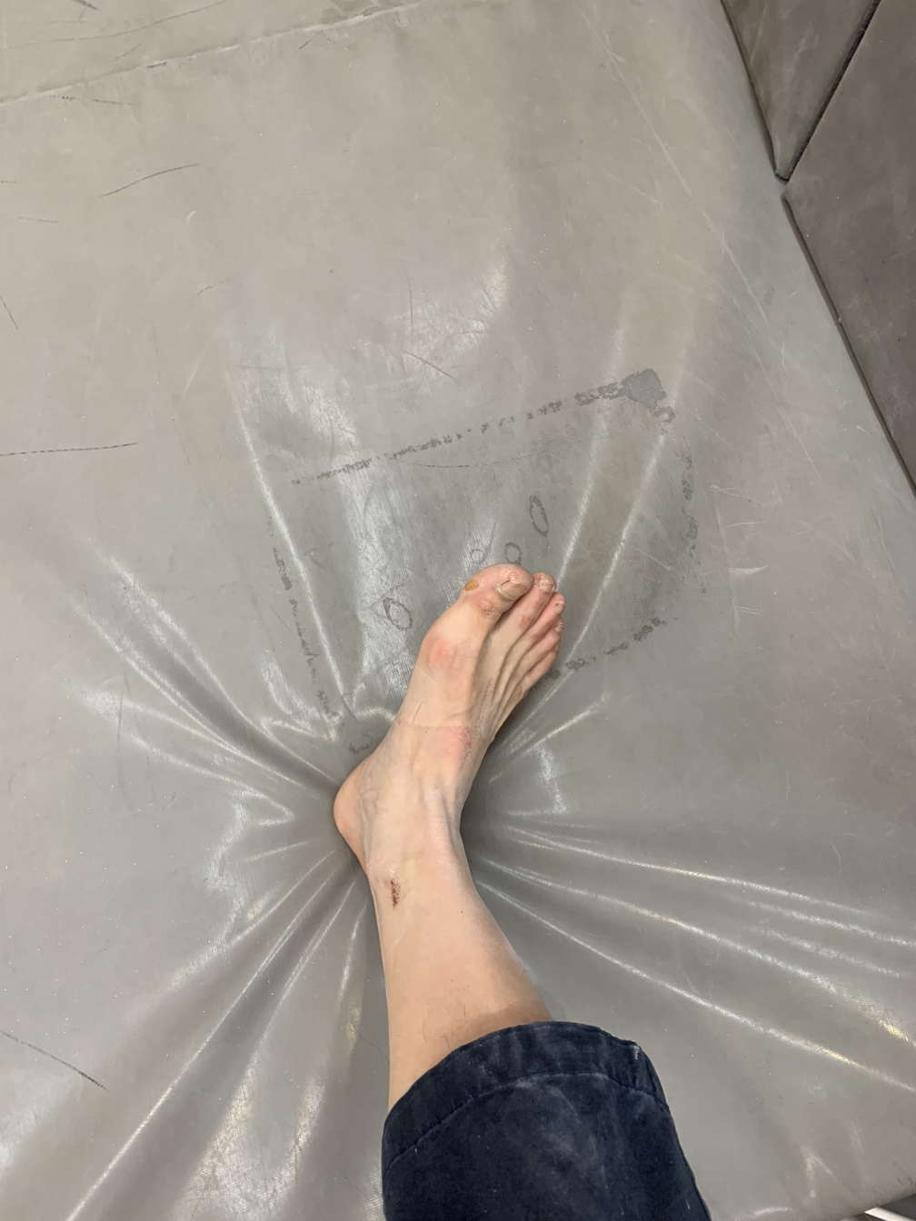 온몸이 만신창이다. 오늘은 잘못 떨어져 발목을 내주기까지! 오른쪽 발목에 테이핑을 하고 다시 벽을 탄다.