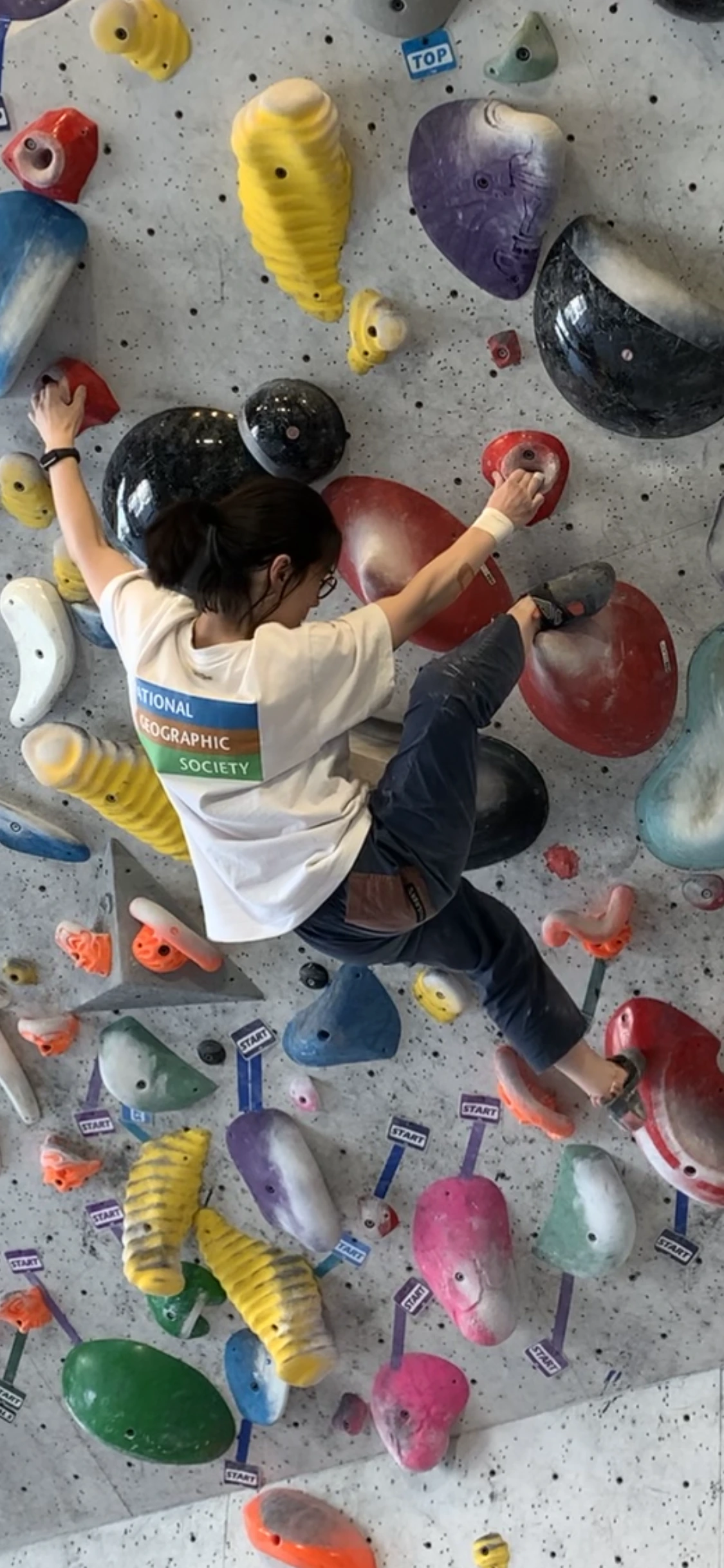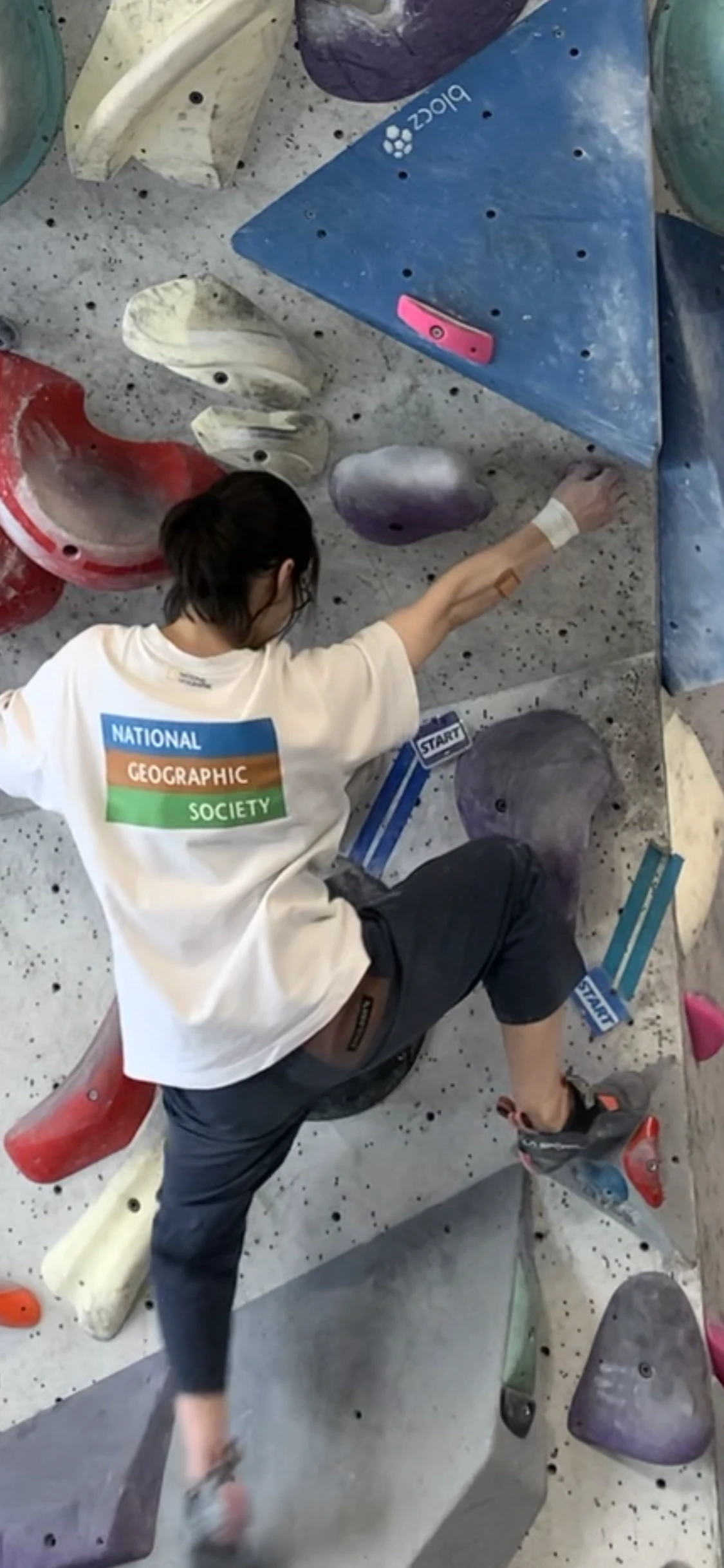 어떻게든 뛰어서 다음 홀드를 두 손으로 꼭 잡아 볼게요!