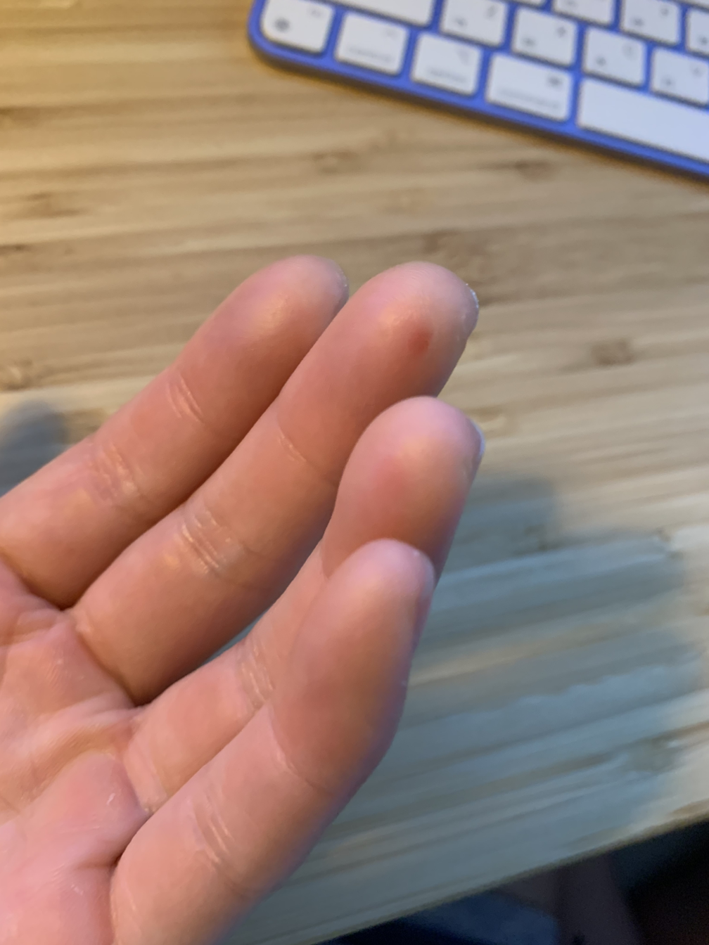 오랜만에 운동했다고… 스킨이 나갔어요. 가운데 손가락에 딸기잼 나오기 직전(피)..