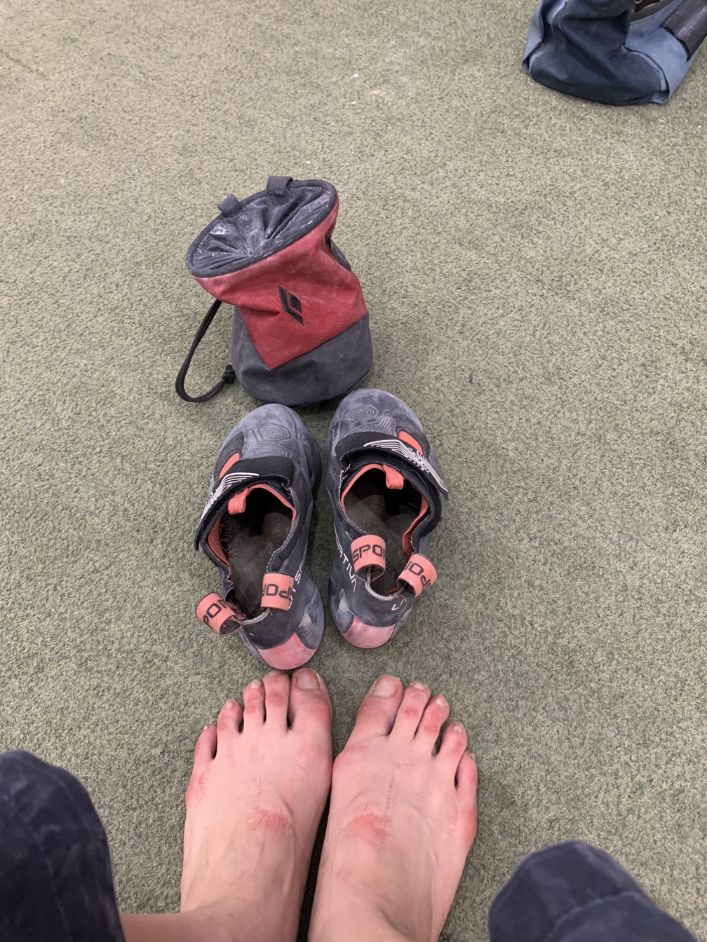 하지만 암벽화는 재질 특성상 신다 보면 내 족형에 맞춰서 늘어나기에 원래 사이즈에 암벽화를 신었을 때 늘어나면 기술을 사용할 때 신발이 벗겨지는 위험성 때문에 대부분 한 사이즈를 줄여서 신어요.