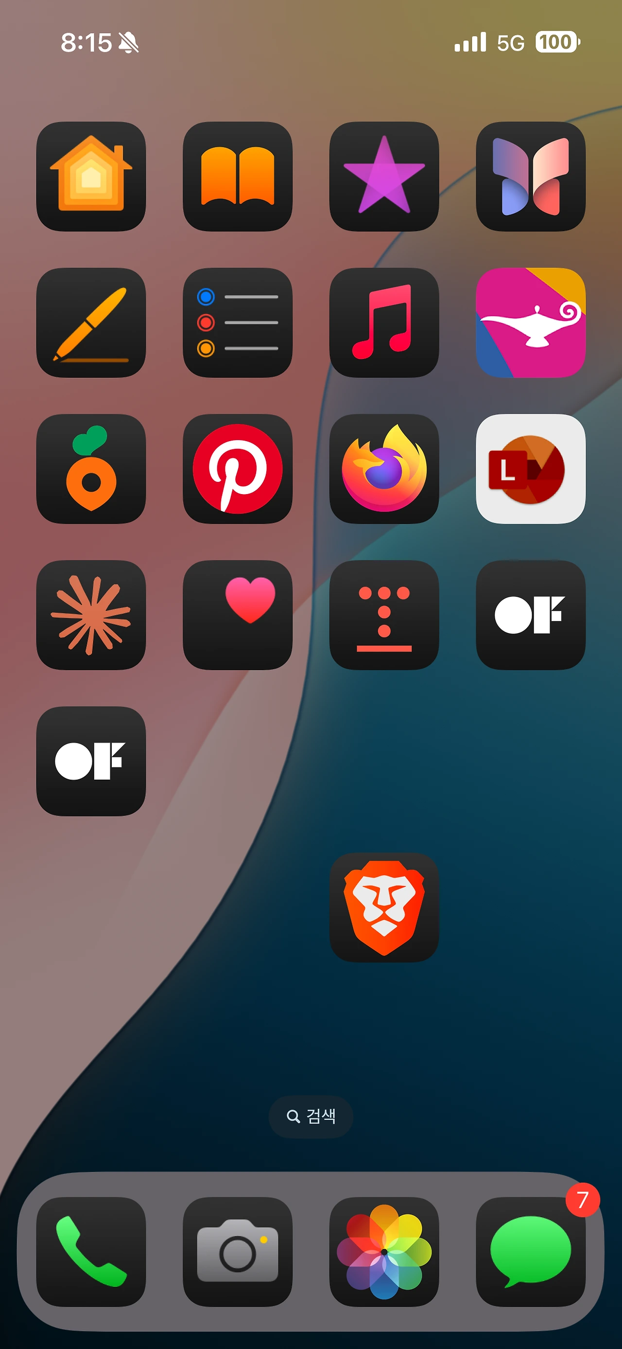 - 아래, 아이폰 바탕화면 사진 맨 밑에 보이는 앱은 "Brave" 라는 웹 브라우져 입니다.