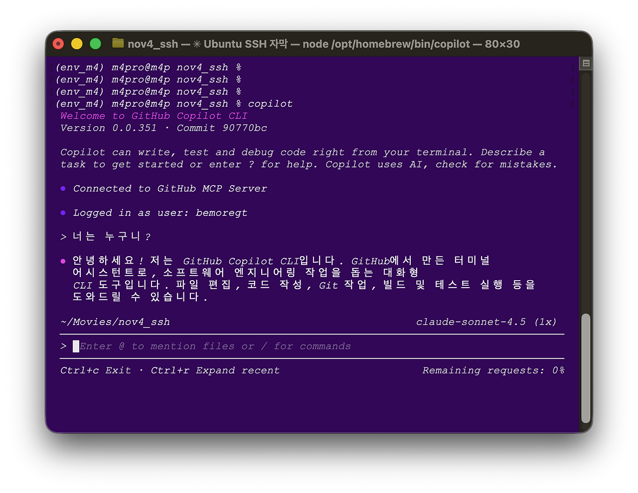 zsh 프롬프트 앞에서 호흡을 고르며 원격 접속을 준비합니다.