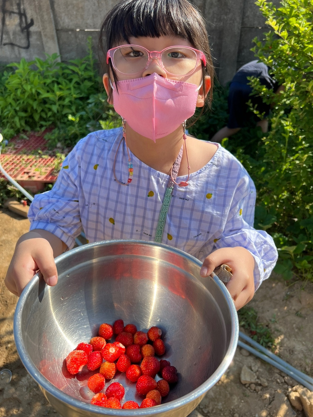 딸기가 작고 예쁘게 방울방울 달렸다. 열리는 것도 고마운데 빨갛게 익어 사방에 향기가 가득하다. 농장이나 마트에서 나는 딸기는 아주 컸는데 우리 딸기는 알알이 정말 작다. 콩알 같은 딸기가 빨갛게 방울방울 익는 그 달콤 새콤한 향기가 바람에 실려 날아온다. 너도나도 고사리 같은 손으로 잘 익은 딸기를 한 바구니씩 따다 보면 어느새 손에 새빨간 물이 든다. 따는 건지 먹는 건지 먹으면서 따면서 정신없었는데 빨갛게 딸기 물이든 손에서는 씻어도 씻어도 단내가 솔솔 난다.