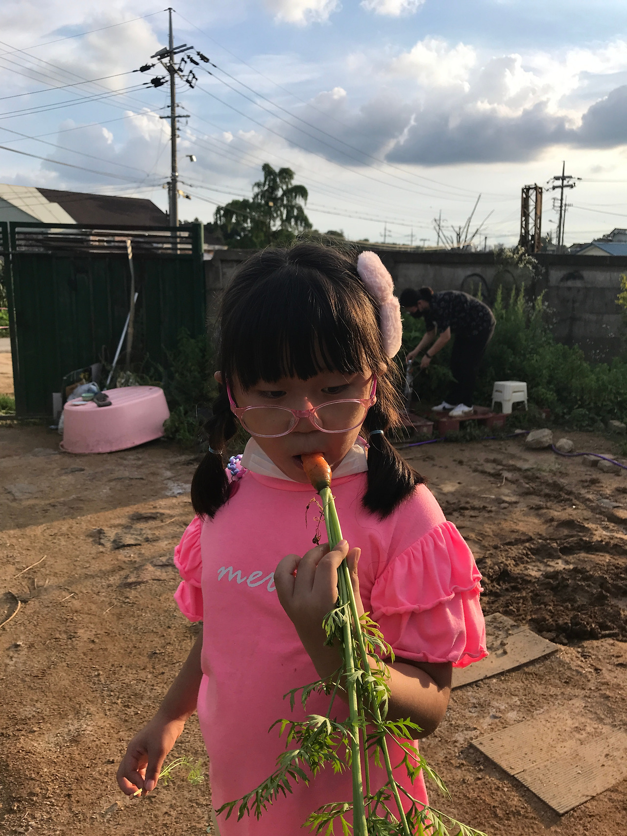 원래 이렇게 당근 향이 강한 건가? 마트에서 사 먹던 당근에 비해 밭에서 바로 뽑아 먹는 당근은 향이 아주 강렬하다. 당근 뽑기에 재미 붙인 아이들은 이제 텃밭 최애 작물로 당근을 뽑는다.