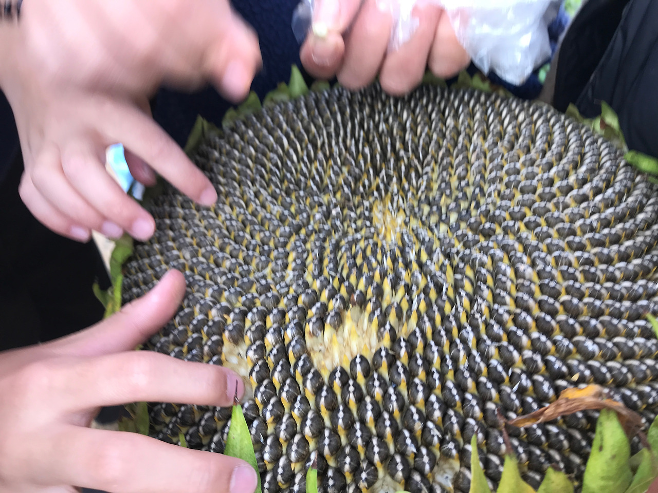 역시 가을은 가을이다. 시간도 날씨도 바람도 여유롭다. 아이들도 어른들도 하루 일과를 마치고 자유롭게 본인의 하고 싶은 것을 찾아 놀고 있을 때였다. 저 멀리서부터 누군가 오는 소리가 들린다. 각자하고 있던 것은 놓지 못하고 시선만 초록 대문 쪽으로 쏠린다. 서로를 신경 쓰고 있다는 것은 참으로 대단하다. 다른 것을 하면서도 같은 공간에 함께하면 무언가로 연결된 느낌이다. 멀리서부터 인기척을 내며 들어온 어른은 이유가 있었다. 손에 무언가를 들고 높이 흔들어 모두의 시선을 끌어모은다. 무언가 다가가보니 해바라기 꽃이었다. 정확히 말하자면 씨앗이 맺힌 해바라기였다. 어른 머리만 한 해바라기를 들고 얻어 왔다고 자랑이다. 다른 곳에서 일을 보다가 아이들과 함께 보고 싶어 그 큰걸 손질도 안 하고 그대로 가져왔단다. 과정을 함께 하고 싶어서 그 무거움을 감수하고 망가질까 두 손에 꼭 쥐고 초록대문이 보이는 곳에서야 마음이 놓여 기쁘게 알리는 마음. 그런 마음이 너무 고맙지 않은가. 혼자 감사의 마음과 감상에 젖어 있다가 정신을 차리고 아이들을 불러 모은다. 처음 보는 커다란 해바라기 꽃에 해바라기 씨가 빼곡히 들어차 가득하다. 해바라기씨가 이렇게 생기는 거라니. 게다가 먹을 수 있다. 아이고, 또 신기하다. 신기하다고 내 것이 될 수는 없다. 다들 자기 몫만큼만 떼어내고 껍질을 까고 만져보고 먹어본다. 모두들 햄스터가 된 모양으로 하나하나 힘겹게 씨를 까서 오도독오도독 잘도 먹는다. 우리 이거 다 심으면 내년엔 팔아도 되겠다며 또 깔깔 거린다.