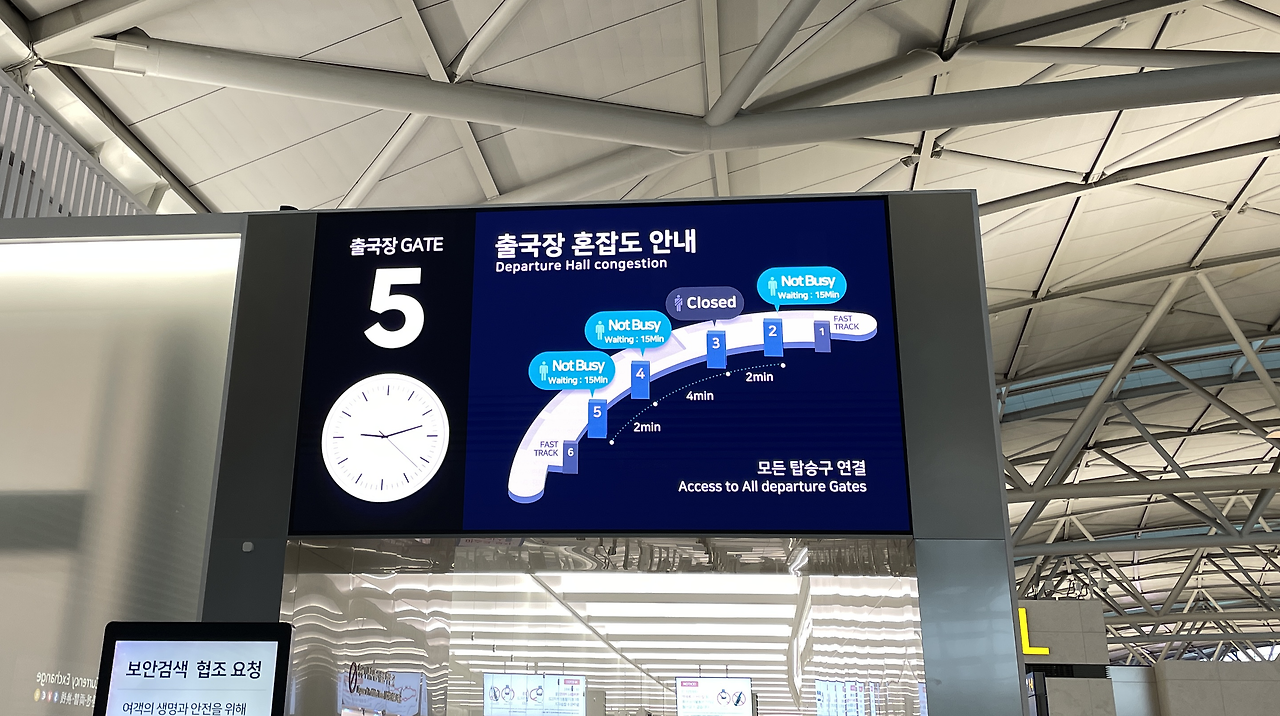 환전한 돈까지 찾고 마지막으로 비가 추적추적 내리는 인천 공항 바깥 풍경을 본 다음 출국장으로 나가려니까 정말 기분이 이상했다. 3년 만에 느껴보는 기분. 오늘만 그런지 몰라도 출국장은 한산했다. 코로나19 이후 국제선을 타는 게 처음이라 출국 심사하는 것도 뭔가 낯설고 설렜다.