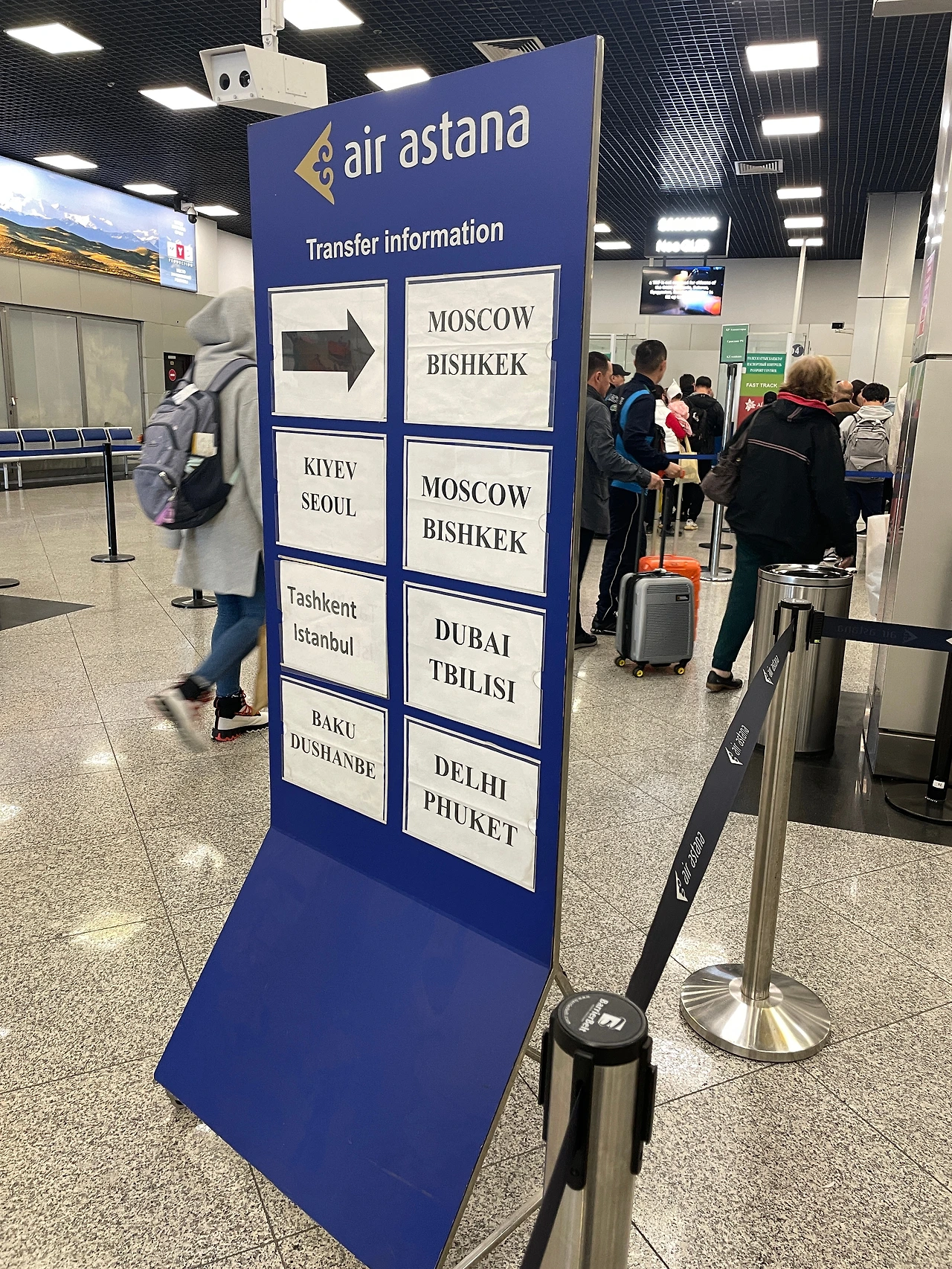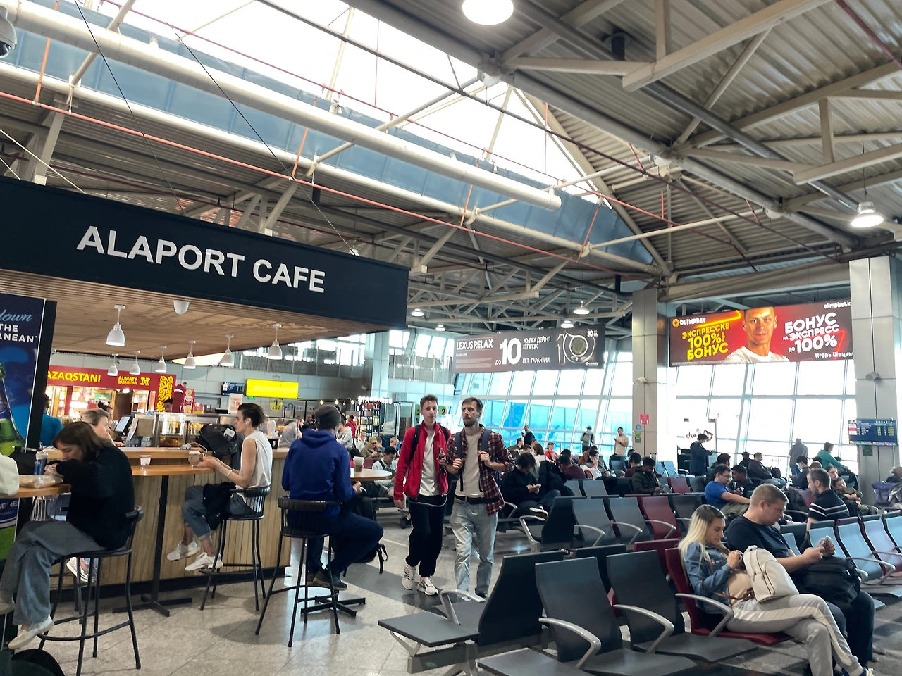 다른 출국장 가서 트랜스퍼 검사(여권이랑 티켓, 짐 검사)하고 가면 이런 작은 탑승장이 나온다. 짐 검사 방식이 너무나 러시아 같고 에어 아스타나 승무원들부터 여기 모든 직원들 러시아어 쓰고 그럼ㅋㅋㅋㅋ심지어 공항 내리자마자 러시아 냄새났다고요ㅠ 구소련 국가들은 러시아를 그다지 좋아하지 않겠지만 나에게도 애증의 나라인 러시아 (지금의 사태는 용서 못해 ㅗㅗ) 그 분위기가 나는 게 묘하고 좋았다.