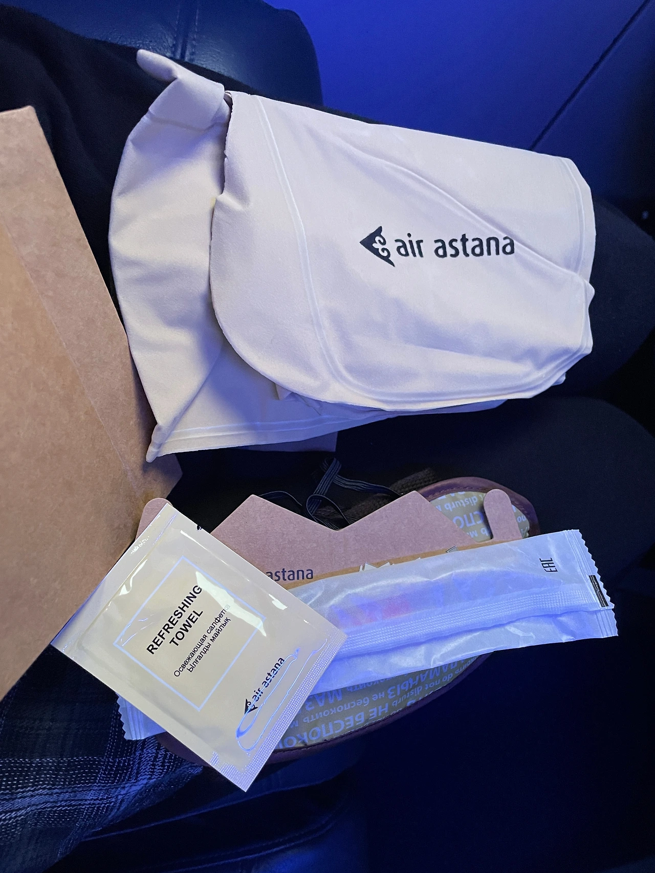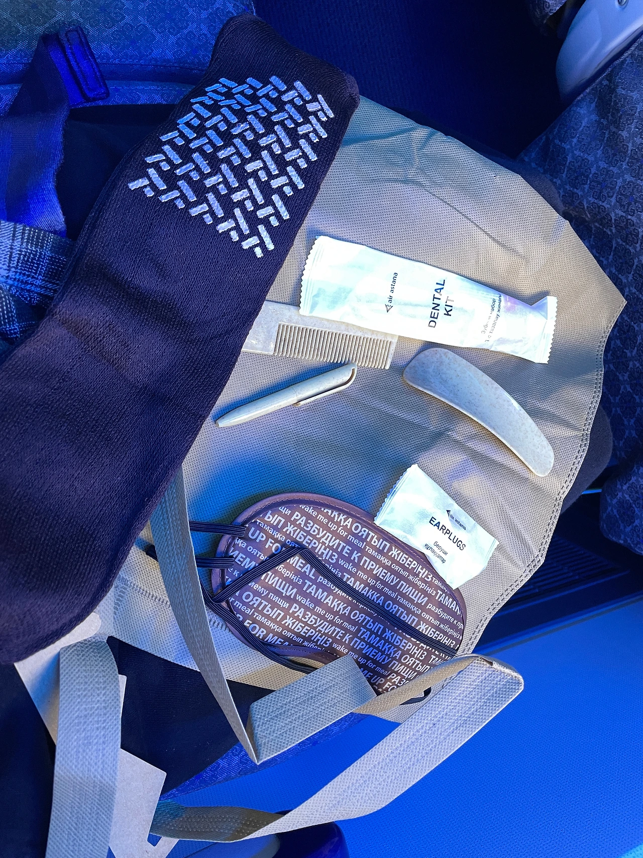 알마티-트빌리시 구간은 국내선 수준인 3-3 배치, 패키지는 다른 건 다 똑같고 빗이랑 구둣주걱이 없는 대신 불어서 쓰는 목베개가 있다.